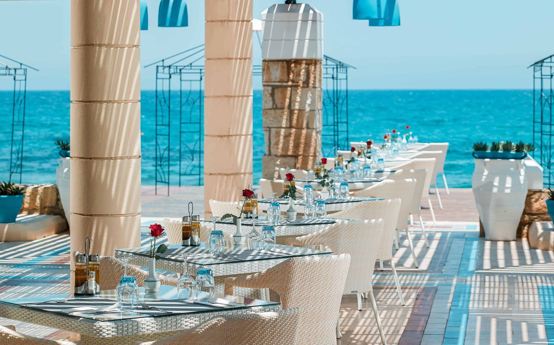 На пляже, в 2 км от курорта Херсонисос, в 20 минутах езды от международного аэропорта Ираклиона.