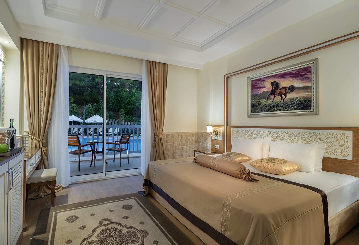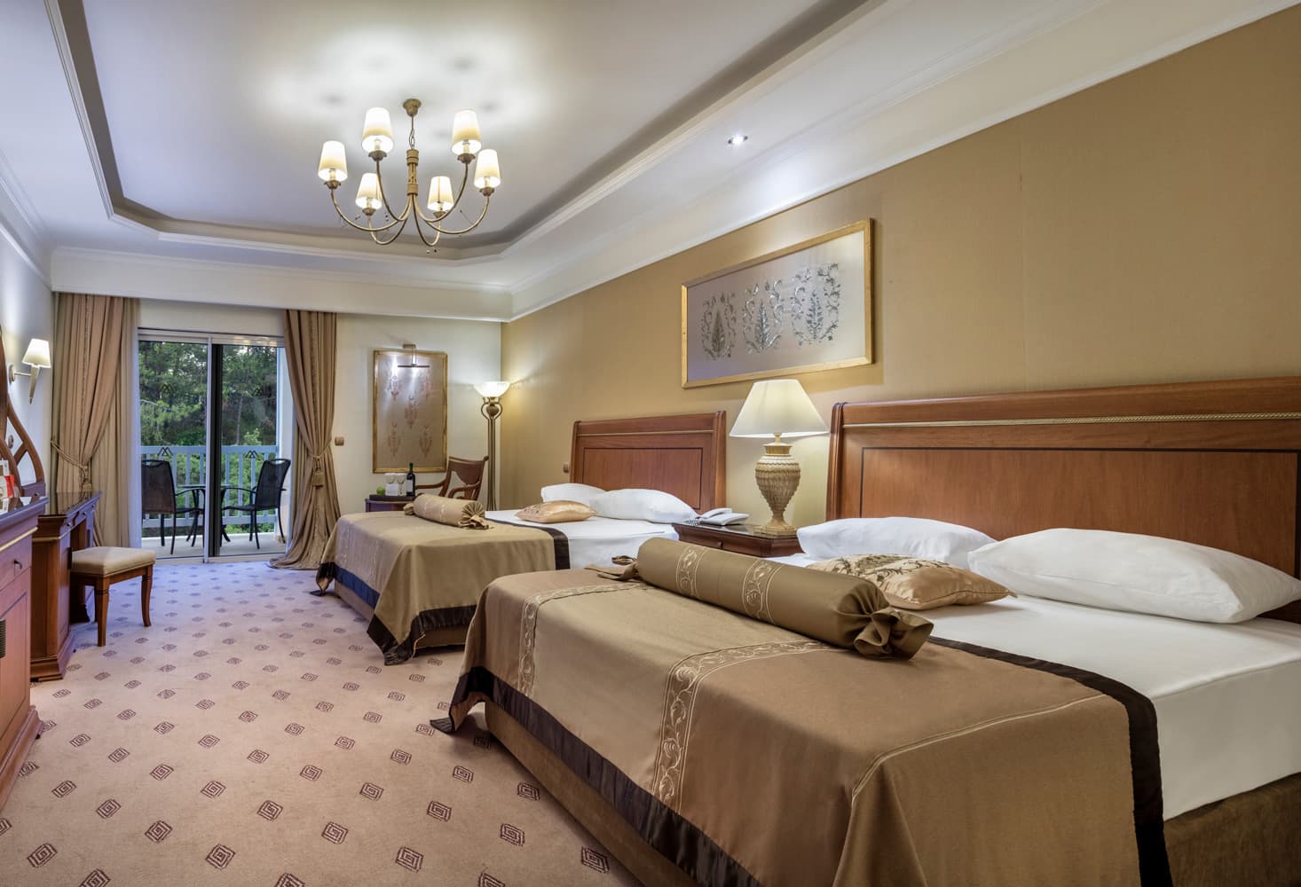 Кондиционер, спутниковое телевидение, DVD плеер, Wi-Fi доступ в Интернет, телефон, сейф, мини-бар, оборудование для приготовления чая и кофе, фен, халаты, тапочки.
