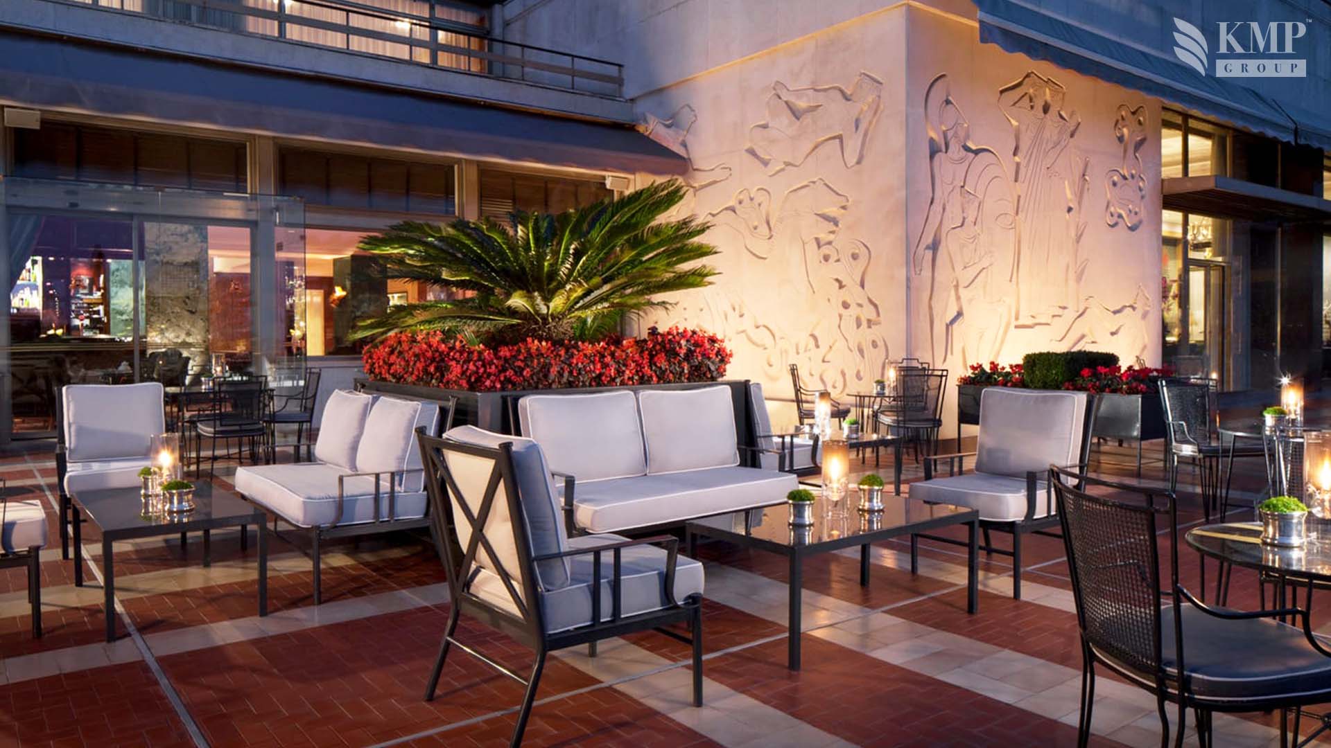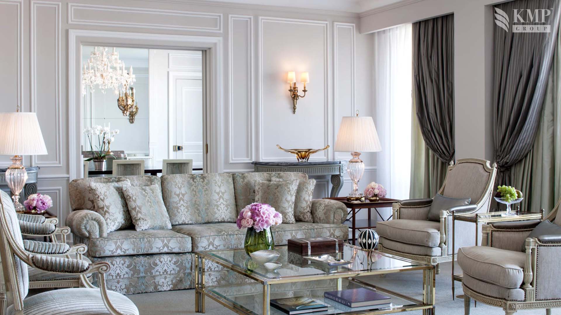 Residency Luxe (255 кв. м). Четыре террасы, гостиная, спальня с кроватью king-size и queen-size, две ванные комнаты. Номер оформлен в стиле 50-х годов прошлого века. Из окон открываются виды города, а также парка.