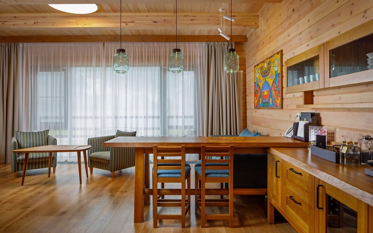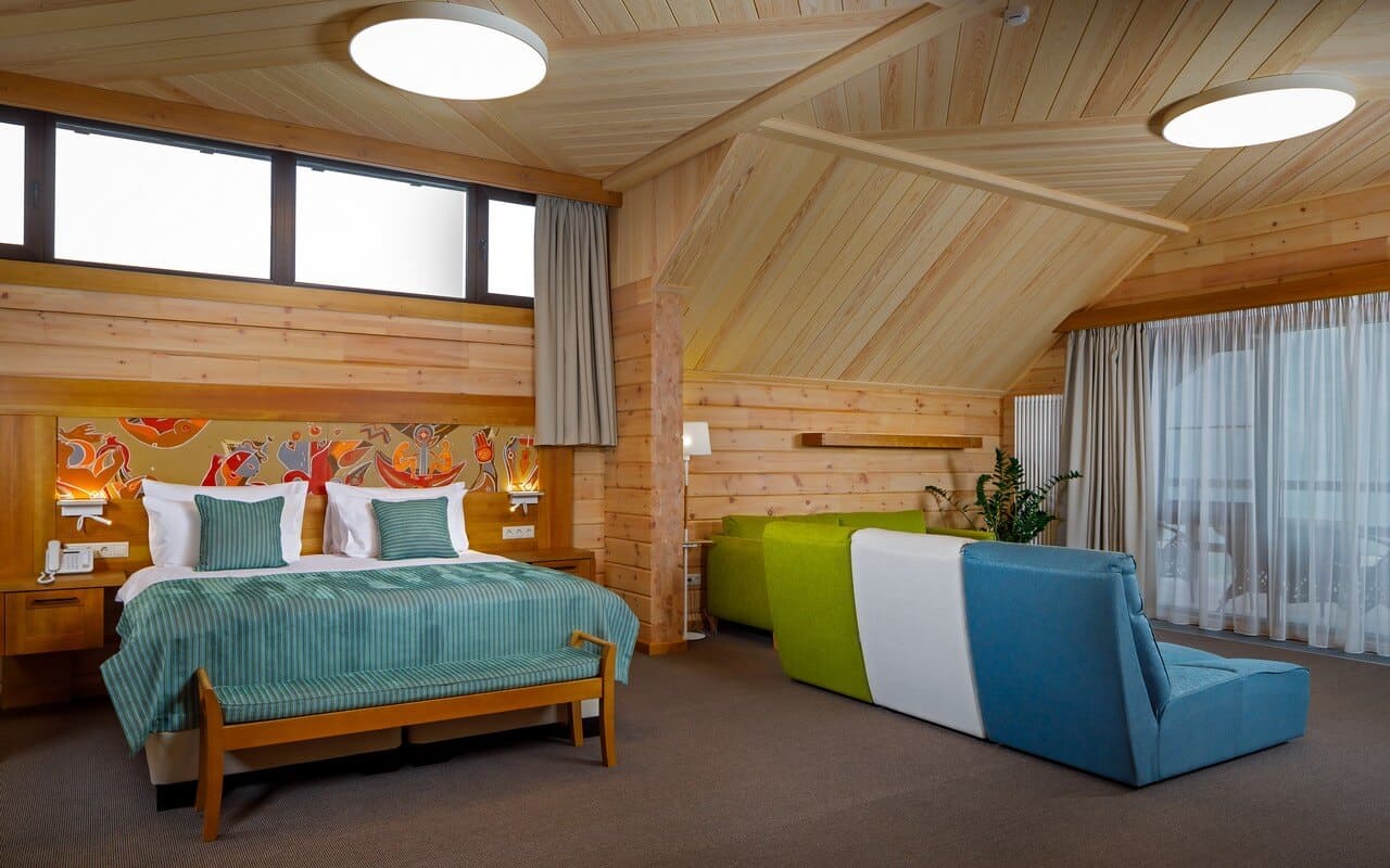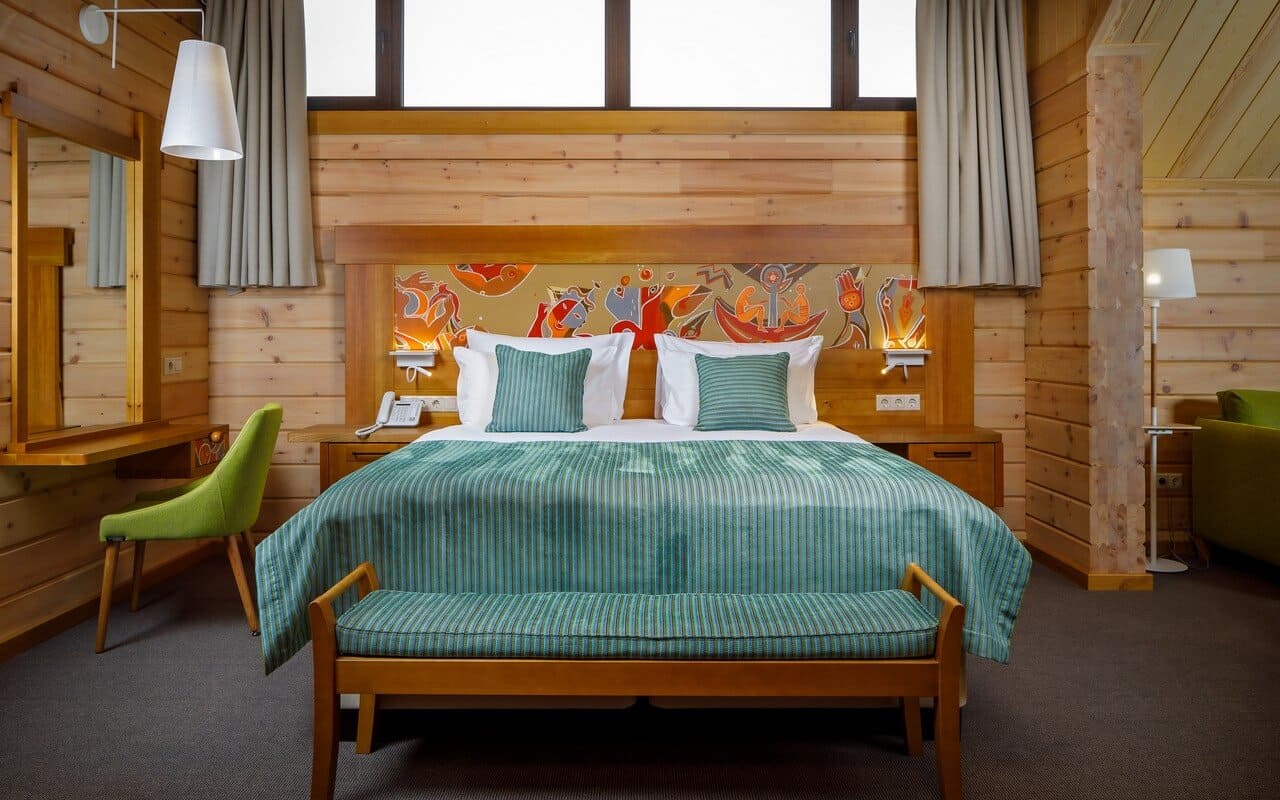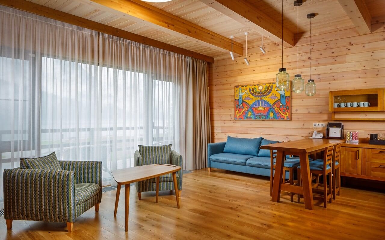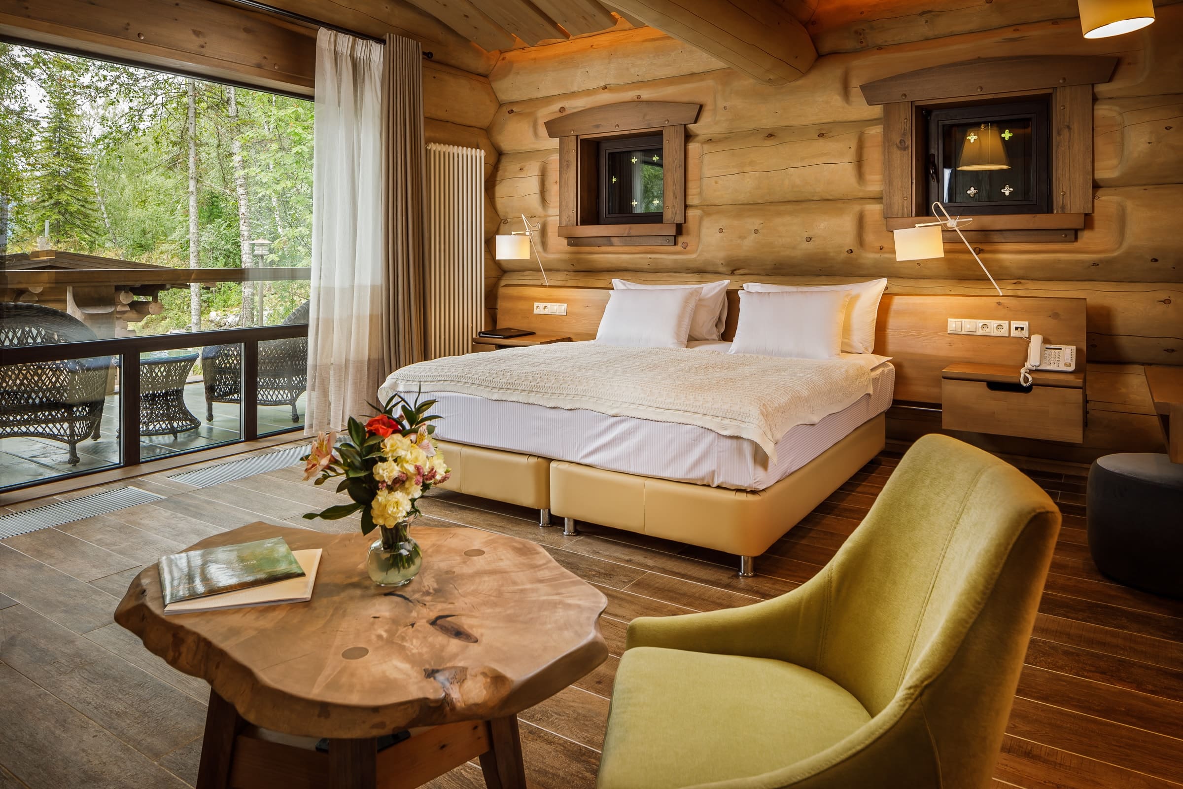 Основу номерного фонда Altay Village Teletskoe составляют уединенные шале, выполненные из массива кедра. Каждое из них — настоящее произведение искусства, с продуманными до мельчайших деталей интерьерами, просторными спальнями и уютными террасами. В небольших шале идеально разместятся двое гостей, а для больших компаний (например, две-три семьи) подойдут семейные шале с двумя спальнями и королевские шале с тремя спальнями. Выберите то, что подходит именно Вам: