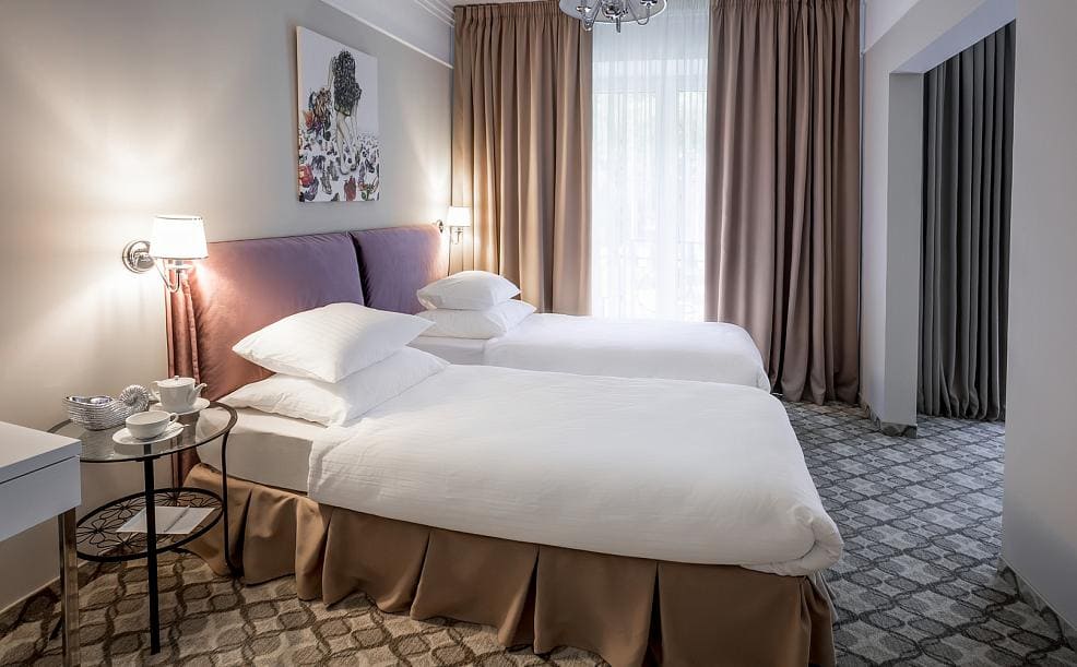Стандарт Лаконичные и изящные номера с индивидуальным дизайном для одноместного или двухместного размещения. Площадь номера 19 кв.м.