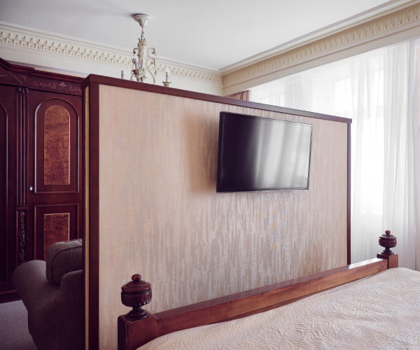 Люкс Большие двухкомнатные номера обставленные эксклюзивной французской мебелью. В данной категории номера есть все самое необходимое как для комфортного отдыха, так и проведения деловых встреч.