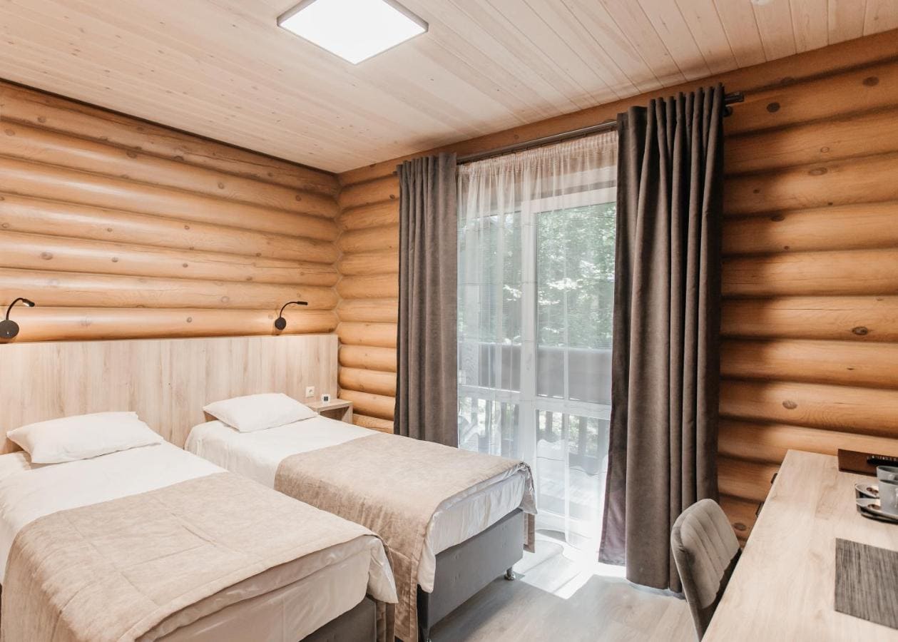 Все дома построены из оцилиндрованного бревна. Комплекс предлагает коттедж Апартаменты, 5 домиков шале, 22 номера различных категорий. В летний период Вы можете выбрать любой из 25 альпийских домиков.