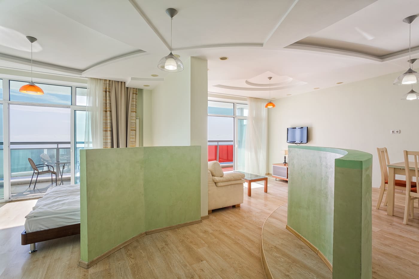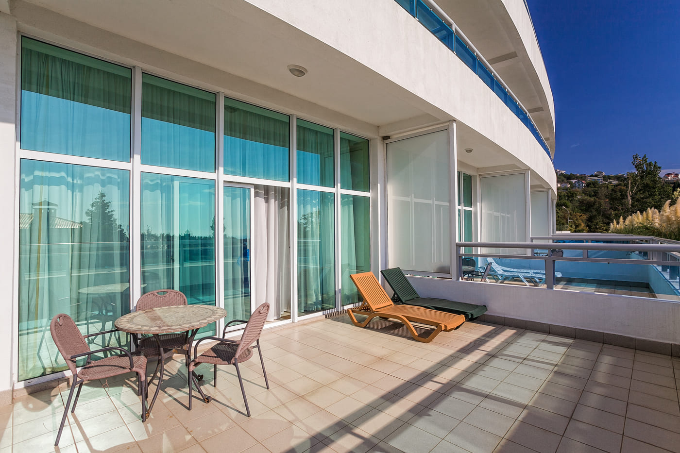 Все номера отеля просторные и уютные (от 30 до 140 м.кв.), с восхитительным видом на море и горы.