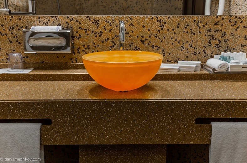 Дизайнерский полулюкс (Design deluxe room) (62 кв. м). Спальня с гостиной зоной (кровать king-size), ванная комната. Вид на море. Номера имеют различный дизайн.