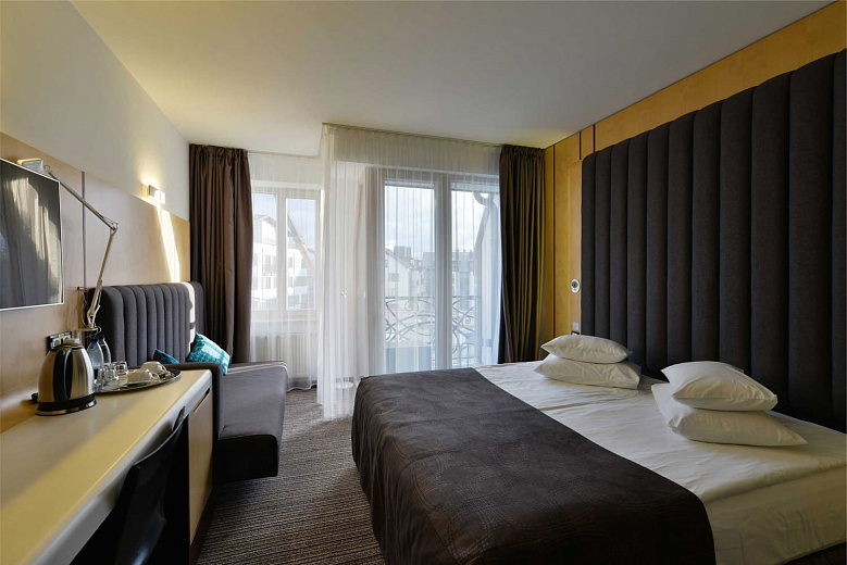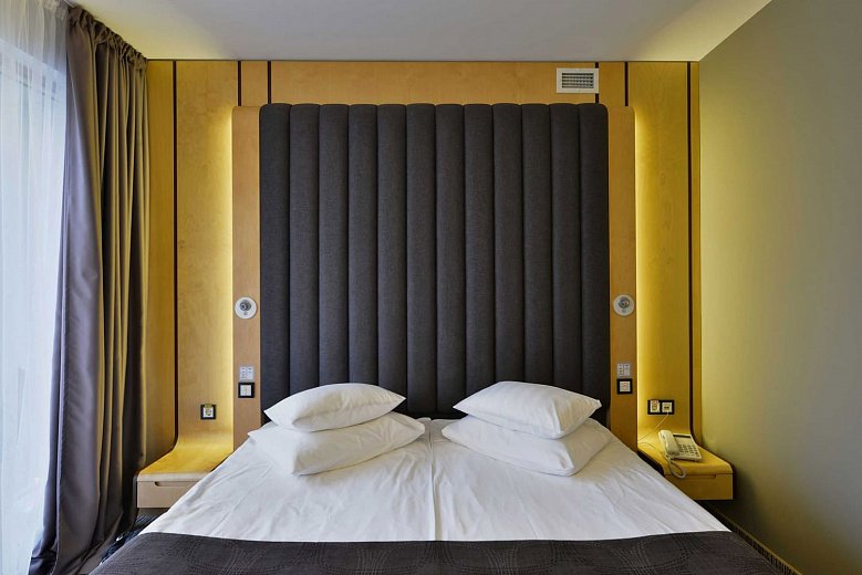 2-местный стандарт (макс. 2+1 чел., 15 кв. м, телевизор, кондиционер, душ, умывальник, сейф, мягкая мебель, шкаф, туалет). Доп. место - диван, может быть установлен без ограничения по возрасту.