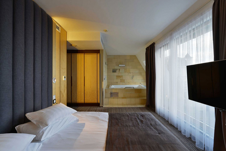 2-местный люкс для молодоженов (макс. 2 чел., 25 кв. м, телевизор, кондиционер, душ, джакузи, сейф).