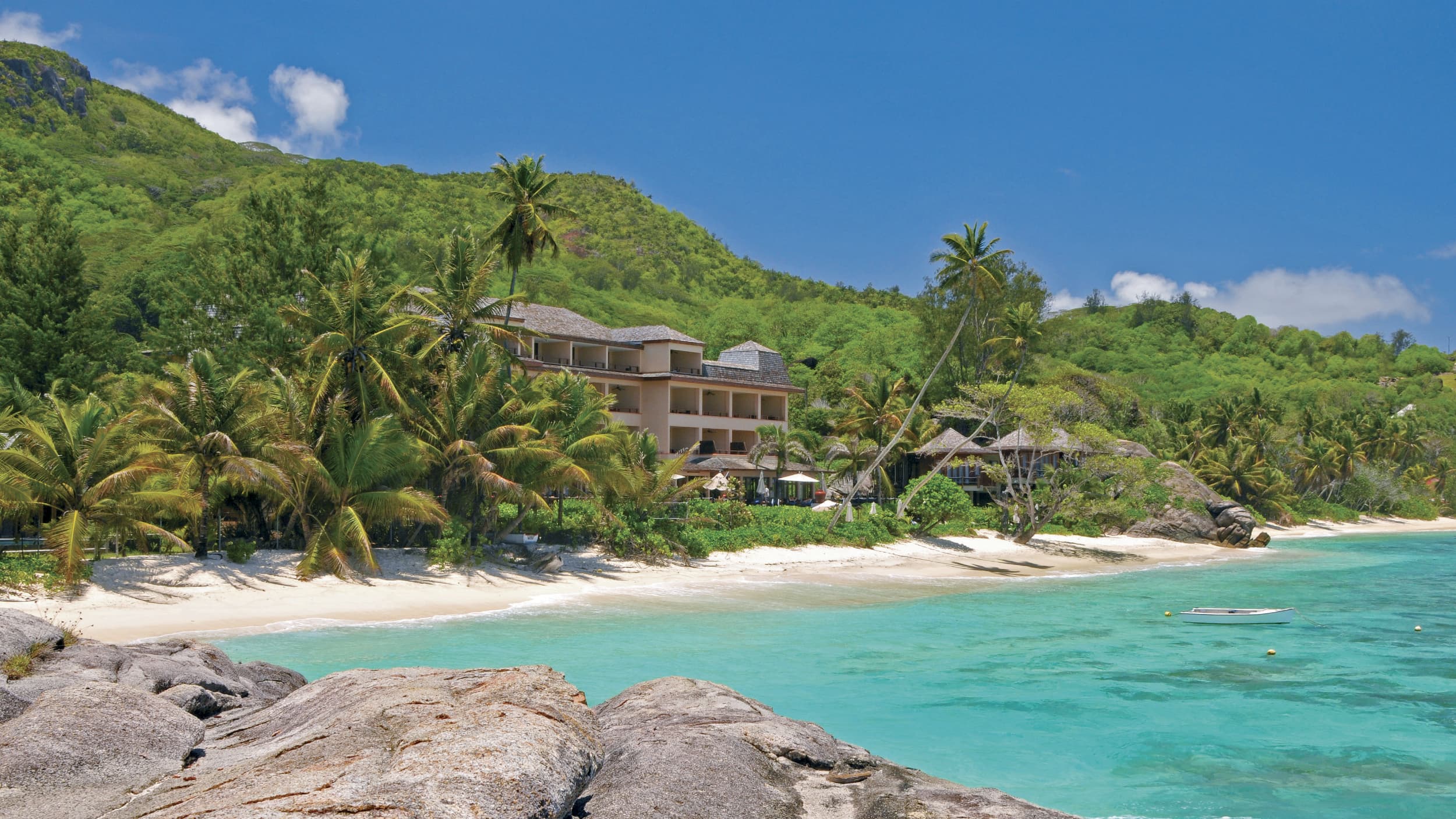 Курортный спа-отель Double Tree Hilton Seychelles Allamanda находится на пляже Анс-Форбанс острова Маэ. Поездка до Сейшельского международного аэропорта занимает 20 минут.