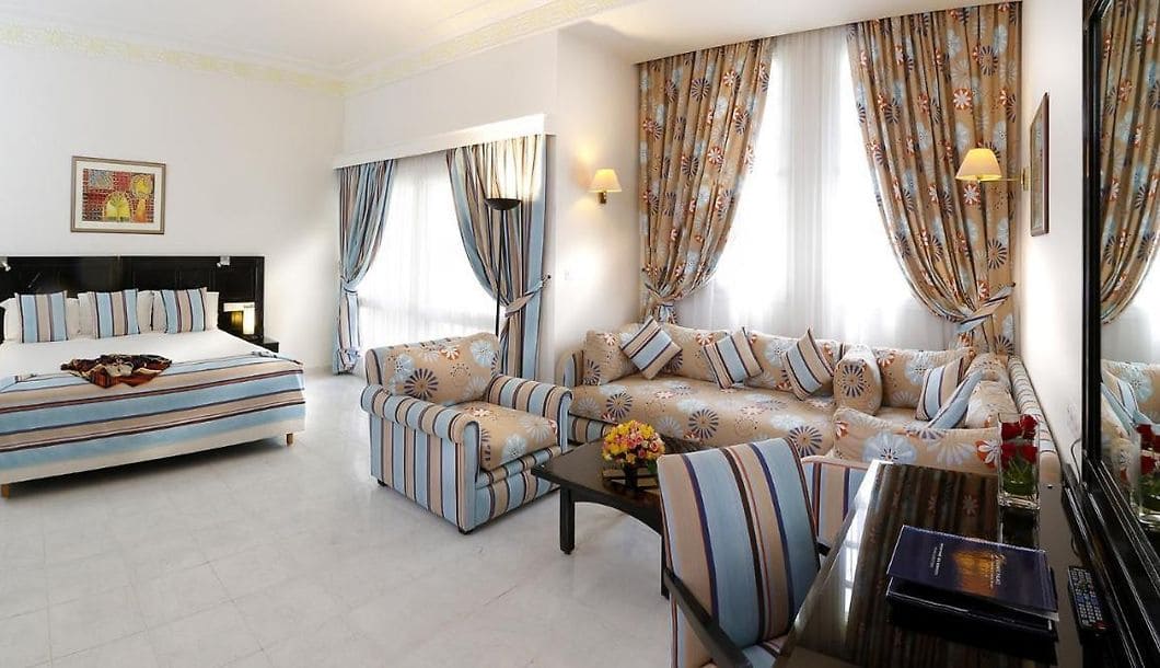 Во всех номерах и люксах курортного отеля Atlantic Palace Agadir Golf Thalasso & Casino имеются кондиционер, телевизор со спутниковыми каналами, мини-бар и собственная ванная комната. С балкона или террасы номеров открывается вид на андалусские сады или бассейн.