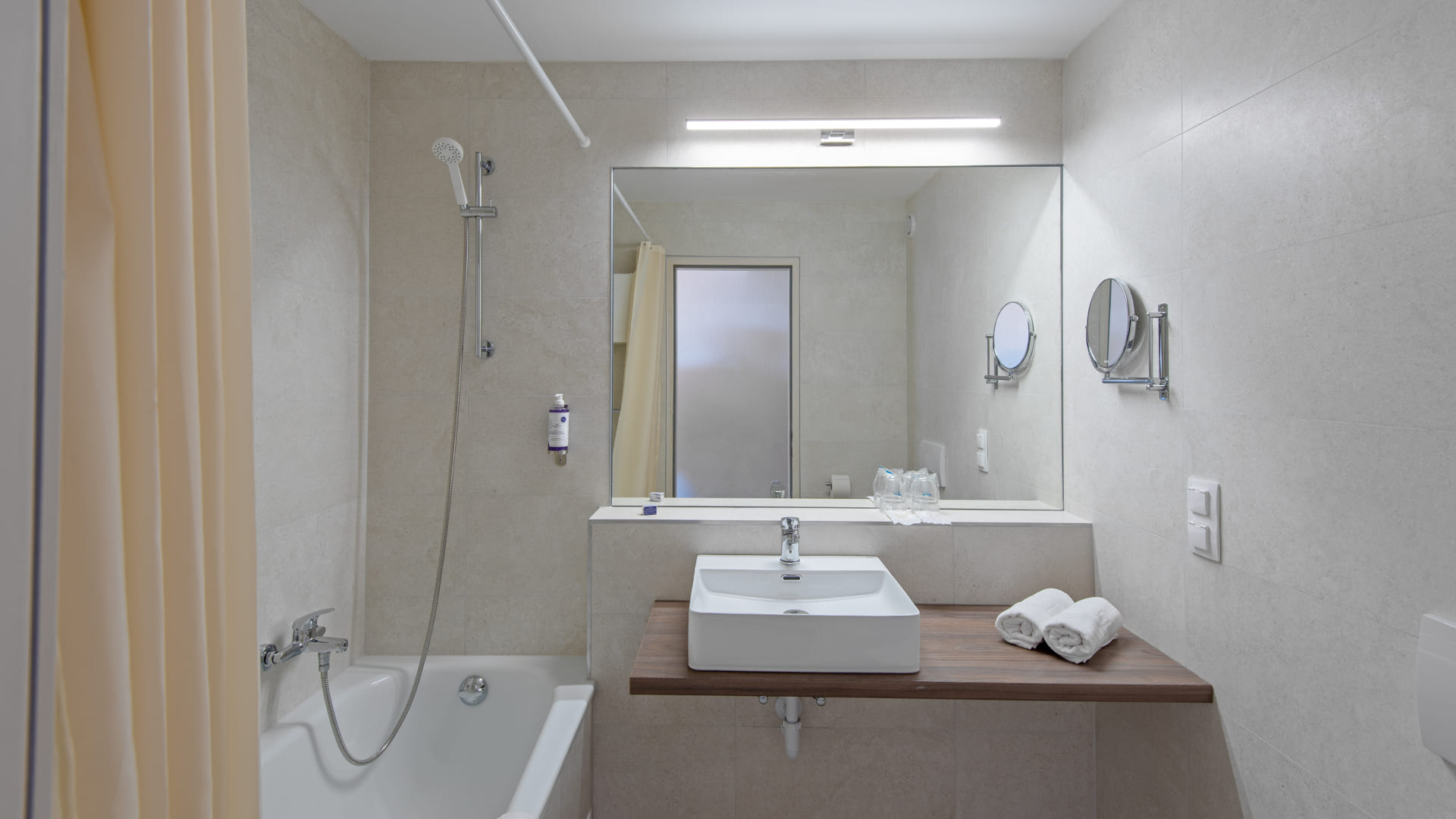 Standard room (20 кв. м): спальня, ванная комната с ванной. Вид на юго-восточную сторону.