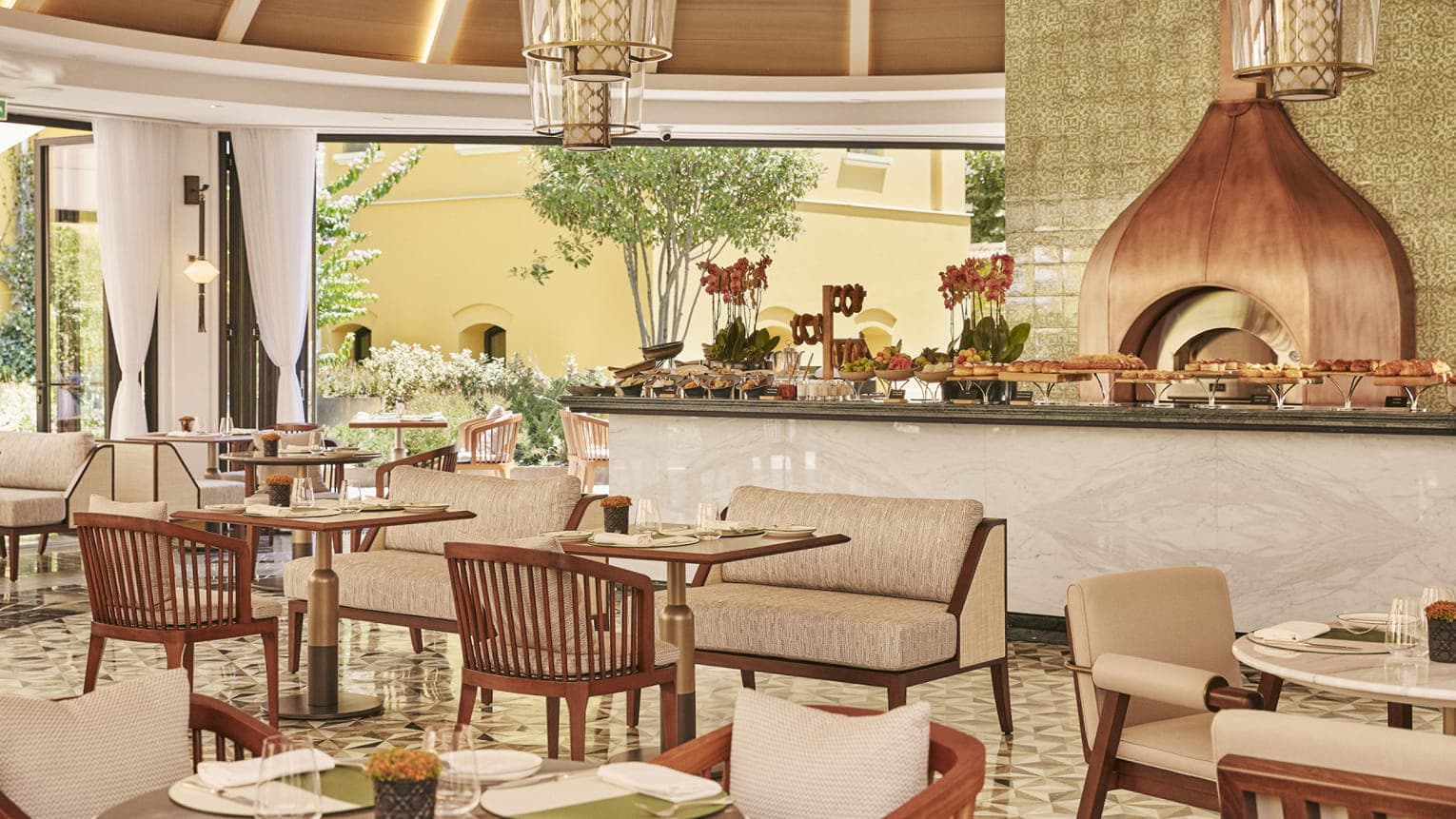 Four Seasons room (60 кв.м.): кровать king-size или twin, ванная комната, отделанная мрамором (ванна, душевая кабина, туалет), гостиная зона. Номера этой категории расположены с первого по третий этаж, в комнатах высокие потолки, окна номеров выходят на внутренний дворик и сад. Номера оформлены в мягких тонах, в турецком стиле.