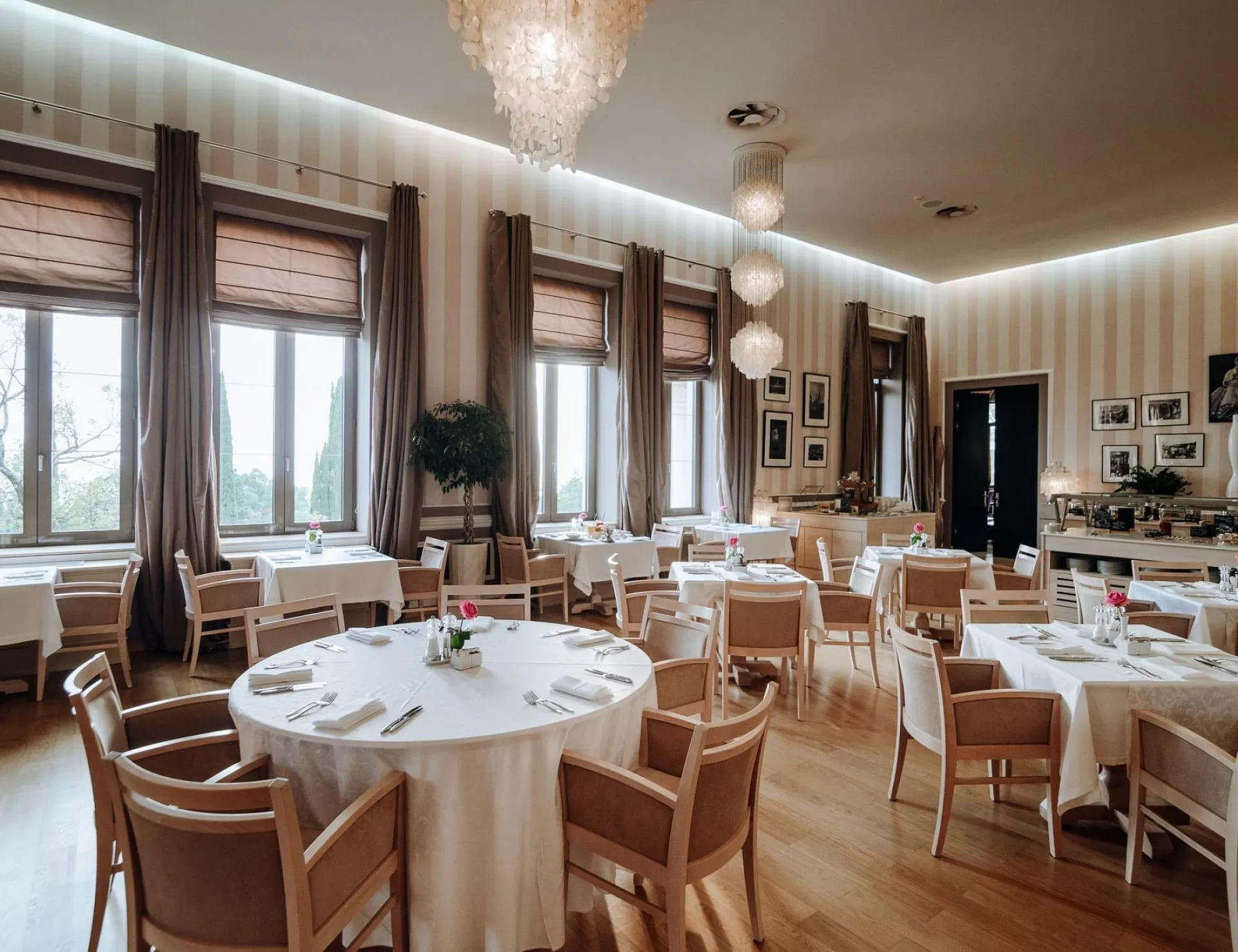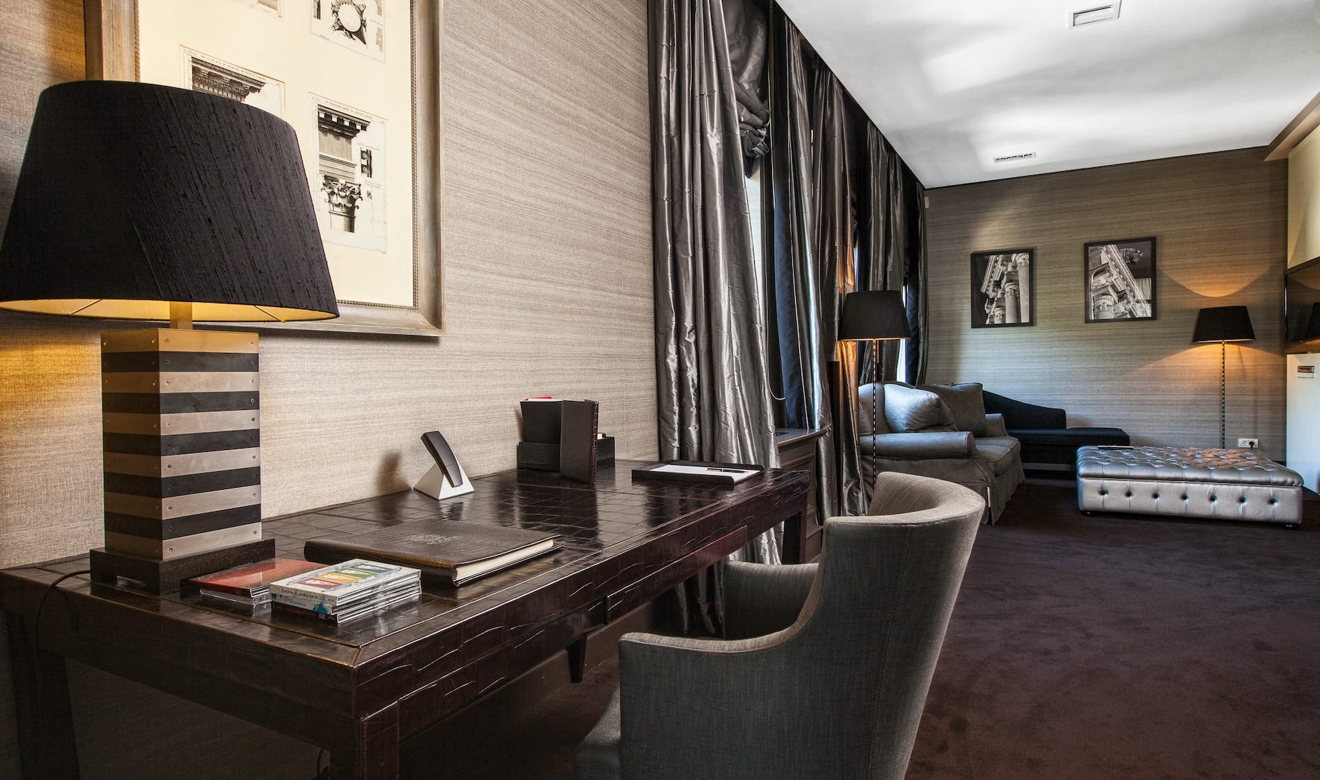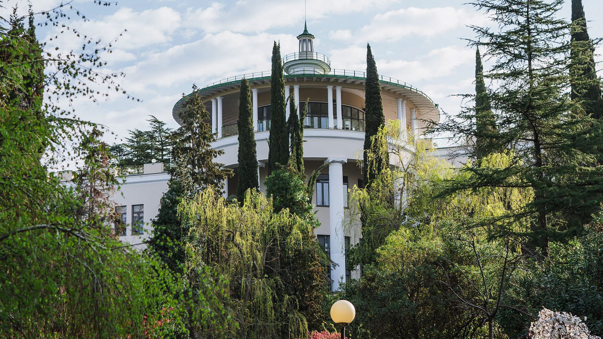 Deluxe suite (162 кв. м). ротонда, терраса, гостиная с камином, кабинет, спальня, гардеробная, ванная комната. Расположены с 2 по 4 этаж. Вид на море и парк.