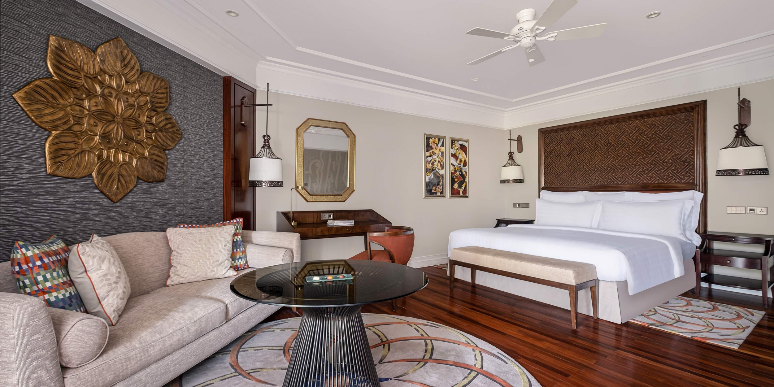 Номера курортного отеля украшены балийскими произведениями искусства. В числе удобств собственная терраса, просторная отделанная мрамором ванная комната с ванной и туалетно-косметическими принадлежностями, телевизор со спутниковыми каналами, сейф и принадлежности для чая/кофе.