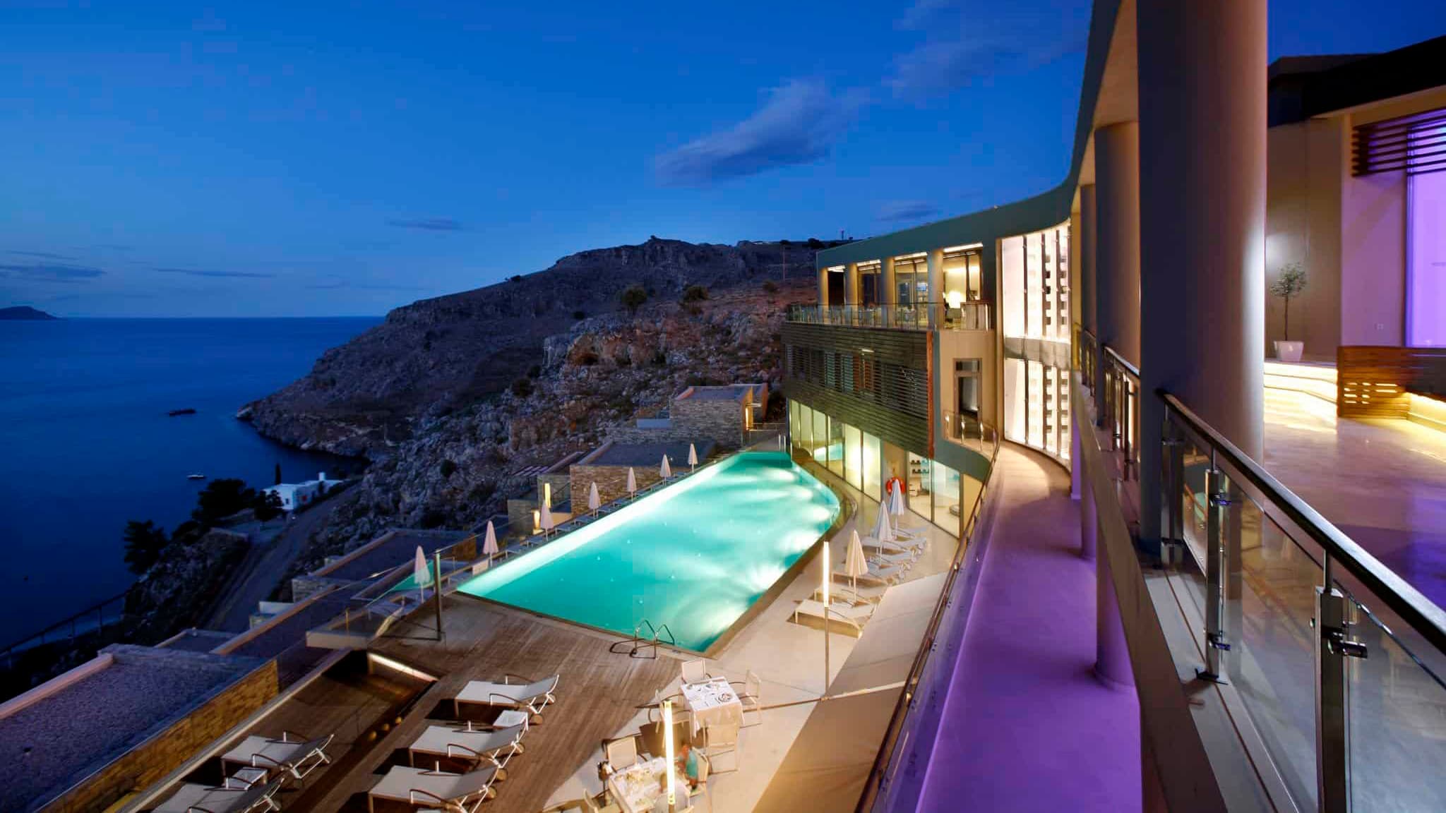 Lindos Blu Luxury Hotel & Suites выполнен в современном стиле. В отеле – 70 номеров и вилл. Из окон открываются чарующие виды Эгейского моря. Некоторые номера и виллы оборудованы персональными бассейнами или бассейнами, общими для двух номеров. Тренажерный зал, теннисный корт, водные виды спорта, WI-FI доступ в Интернет, услуги консьержа. Закрытый подогреваемый бассейн, сауна, парная, массаж, стоунтерапия, процедуры для лица и тела.