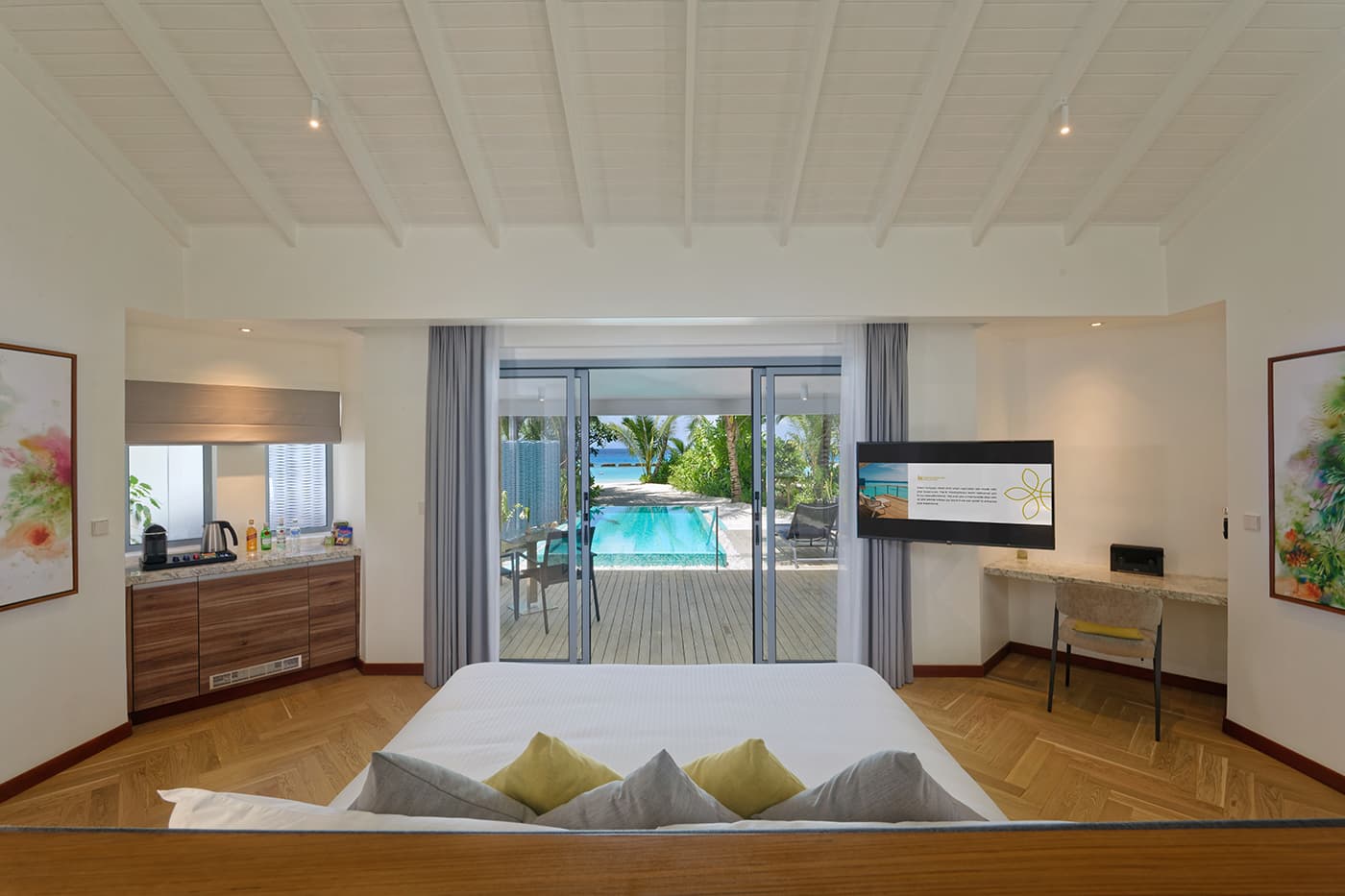 Современные виллы построены на пляже или над водой и оснащены кондиционером, телевизором с плоским экраном, DVD-плеером и док-станцией для iPod. В числе удобств открытая терраса, эспрессо-машина и просторная собственная ванная комната с ванной и душем.