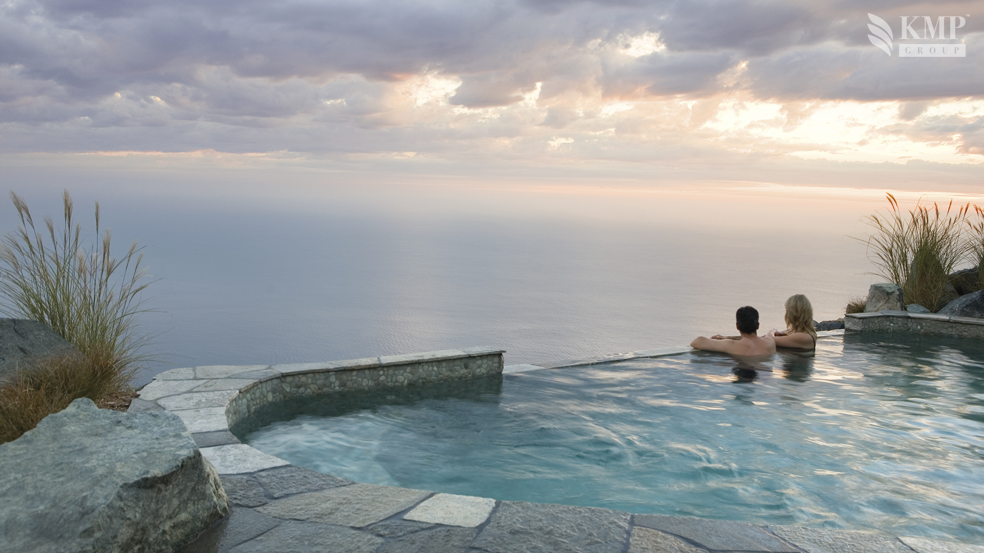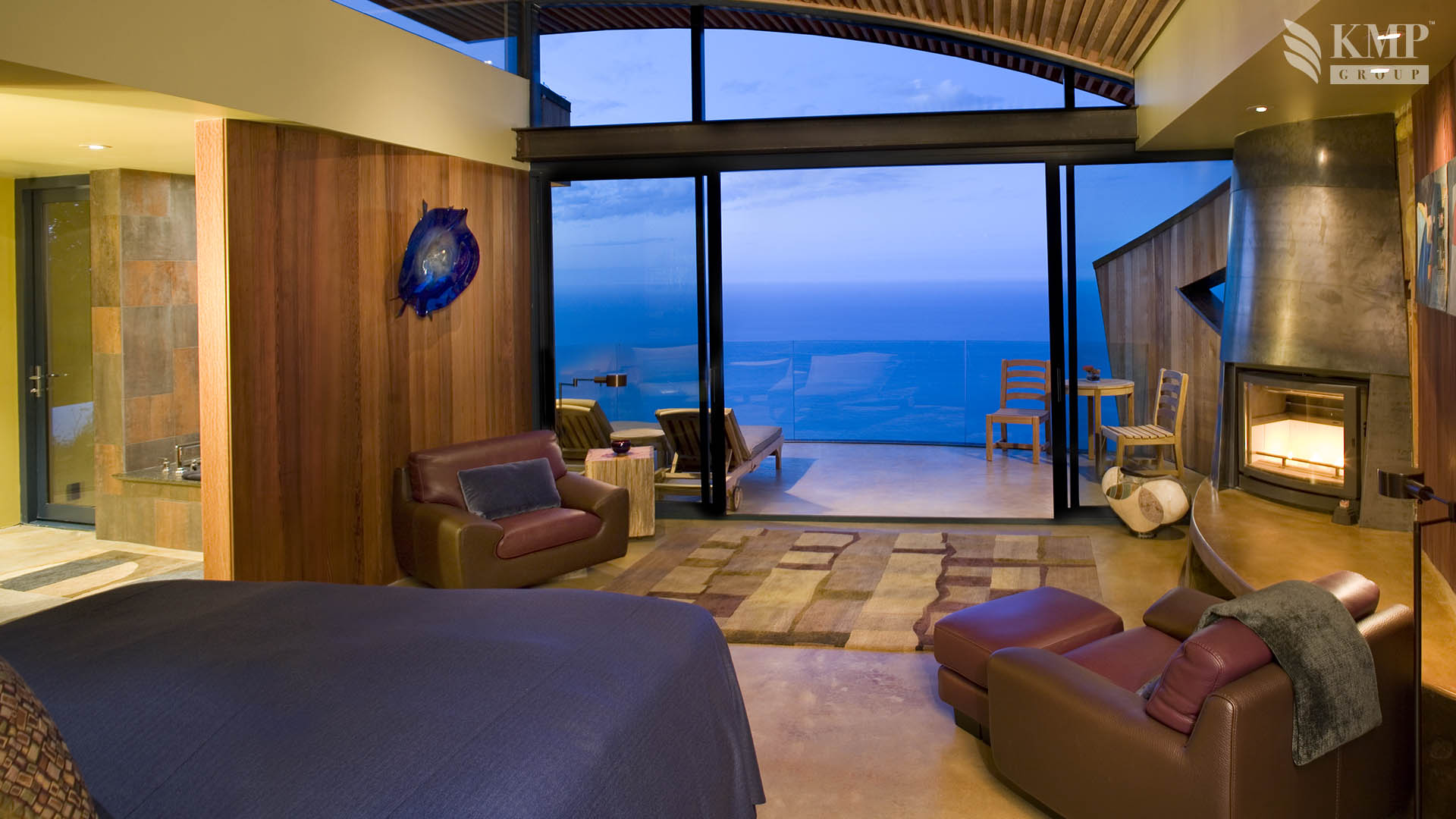 Pacific Suite: прибл.86 м2. Роскошный номер с отдельным входом, расположен в коттедже круглой формы; обставлен дизайнерской мебелью, включает гостиную со стеклянными стенами, спальню со стеклянными стенами и камином, просторную ванную с ванной, отдельным душем и видом на океан, террасу с панорамным видом на океан. В номере – полы с подогревом.