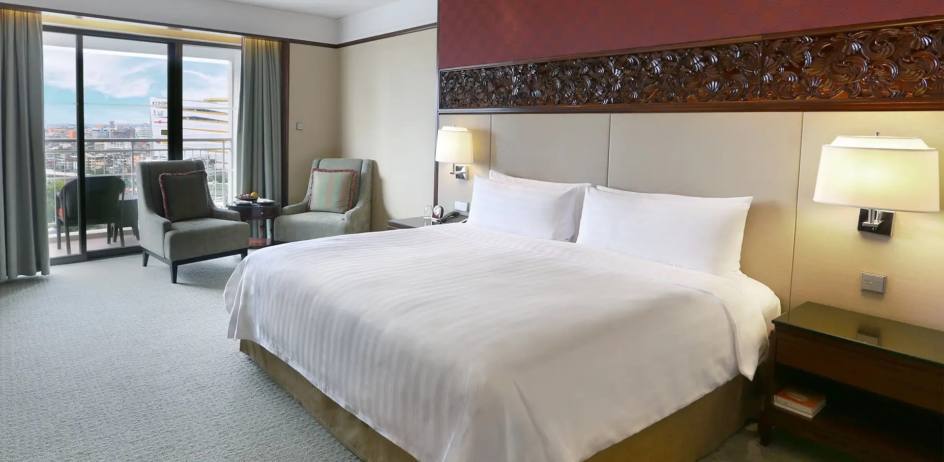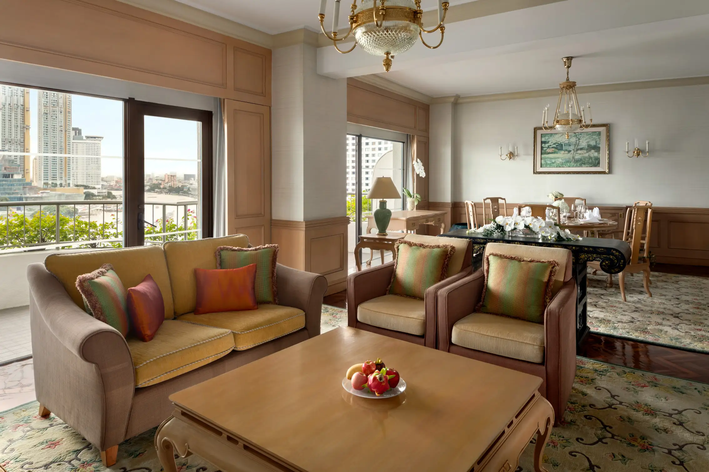 Отель Shangri-La Bangkok находится в квартале Силом, возле станции надземного метро Saphan Taksin. Поездка до международного аэропорта Суварнабхуми занимает около 40 минут.