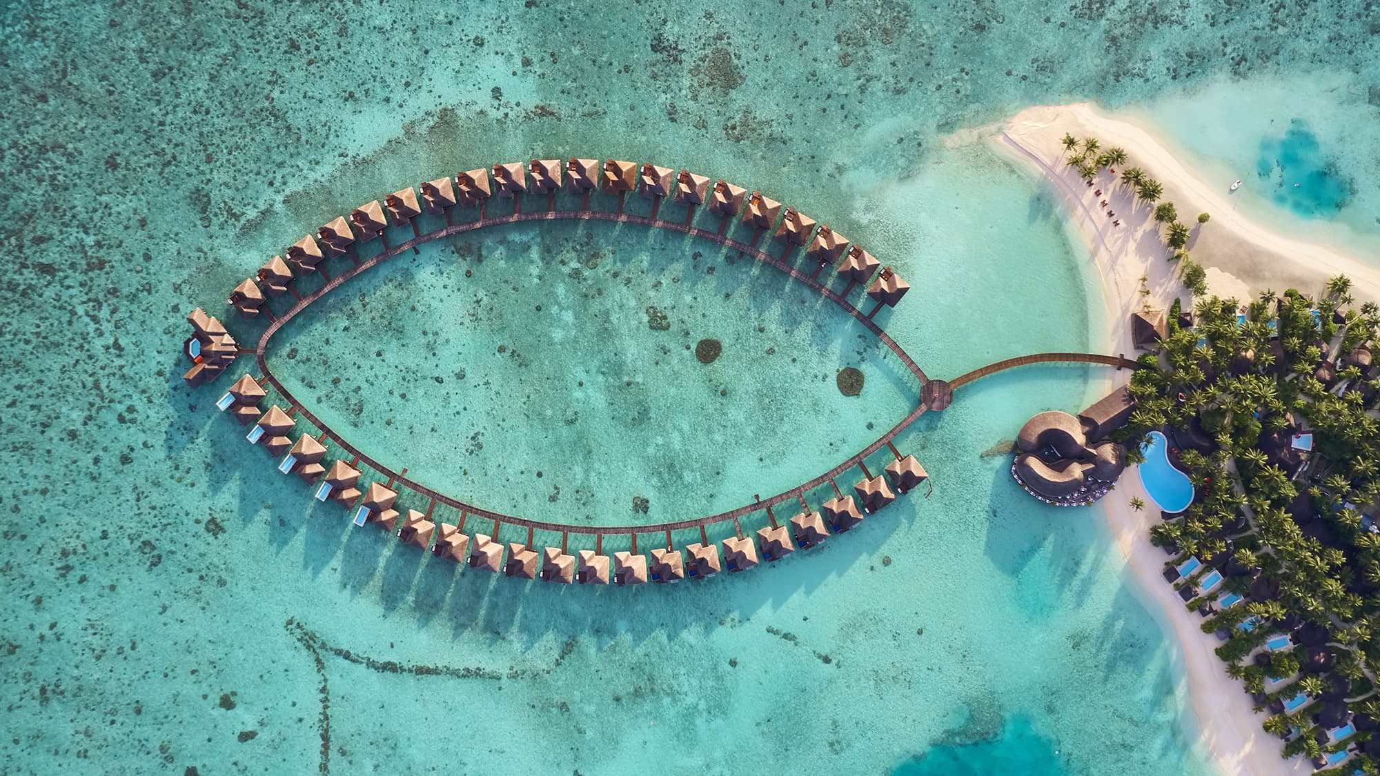 Курортный отель Sun Aqua Vilu Reef находится в 35 минутах полета на гидроплане от международного аэропорта Мале.