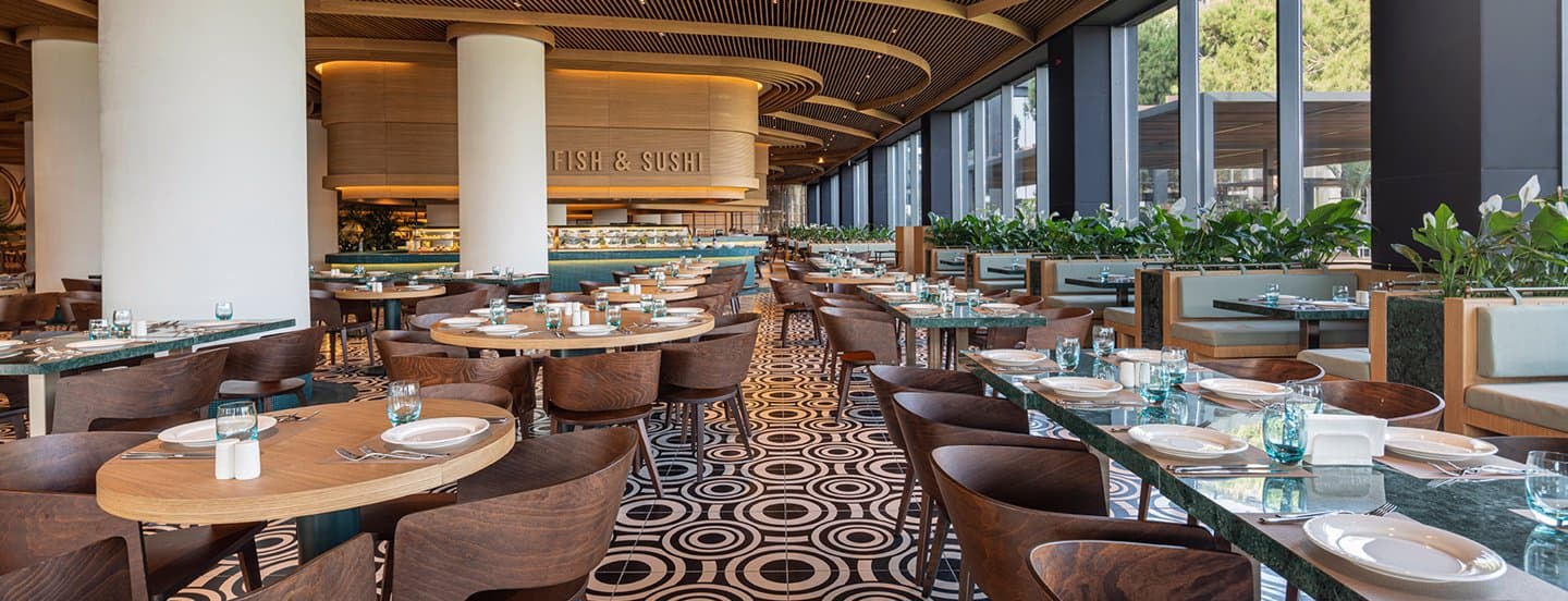 В курортном отеле работает множество ресторанов, специализирующихся на мексиканской, японской, итальянской и турецкой кухнях. К услугам гостей 9 баров, включая бар на пляже, диско-бар Underground и джаз-бар Sunset.