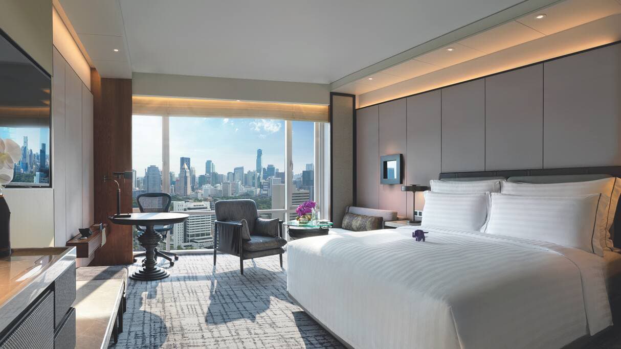 К услугам гостей просторные номера. Номера отеля Conrad Bangkok оформлены в современном стиле с использованием таких элементов традиционного тайского декора, как шелковые ткани и натуральное дерево. Все здесь располагает к отдыху, благодаря кроватям класса люкс и выбору подушек вам гарантирован полноценный ночной сон. Гости могут воспользоваться высокоскоростным широкополосным доступом в Интернет и портами для передачи данных, в отеле производится обслуживание номеров. Вы сможете отдохнуть на сеансе массажа или заказать процедуры по уходу за телом в спа-салоне Season, а также потренироваться в полностью оборудованном фитнес-центре, поиграть в теннис или освежиться в открытом плавательном бассейне. Кроме того, в вашем распоряжении сауна и паровая баня. В отеле Conrad Bangkok работают 5 ресторанов. В ресторане Liu подают аутентичные китайские блюда, кафе Café@2 специализируется на тайских и французских деликатесах. В ресторане Kisara можно заказать блюда японской кухни. В баре Diplomat сервируют мастерски приготовленные коктейли и безалкогольные напитки.