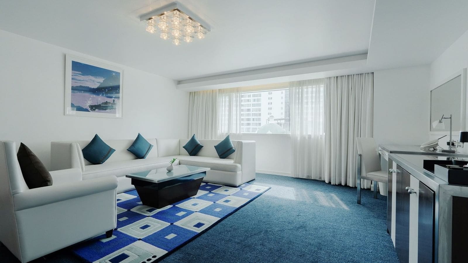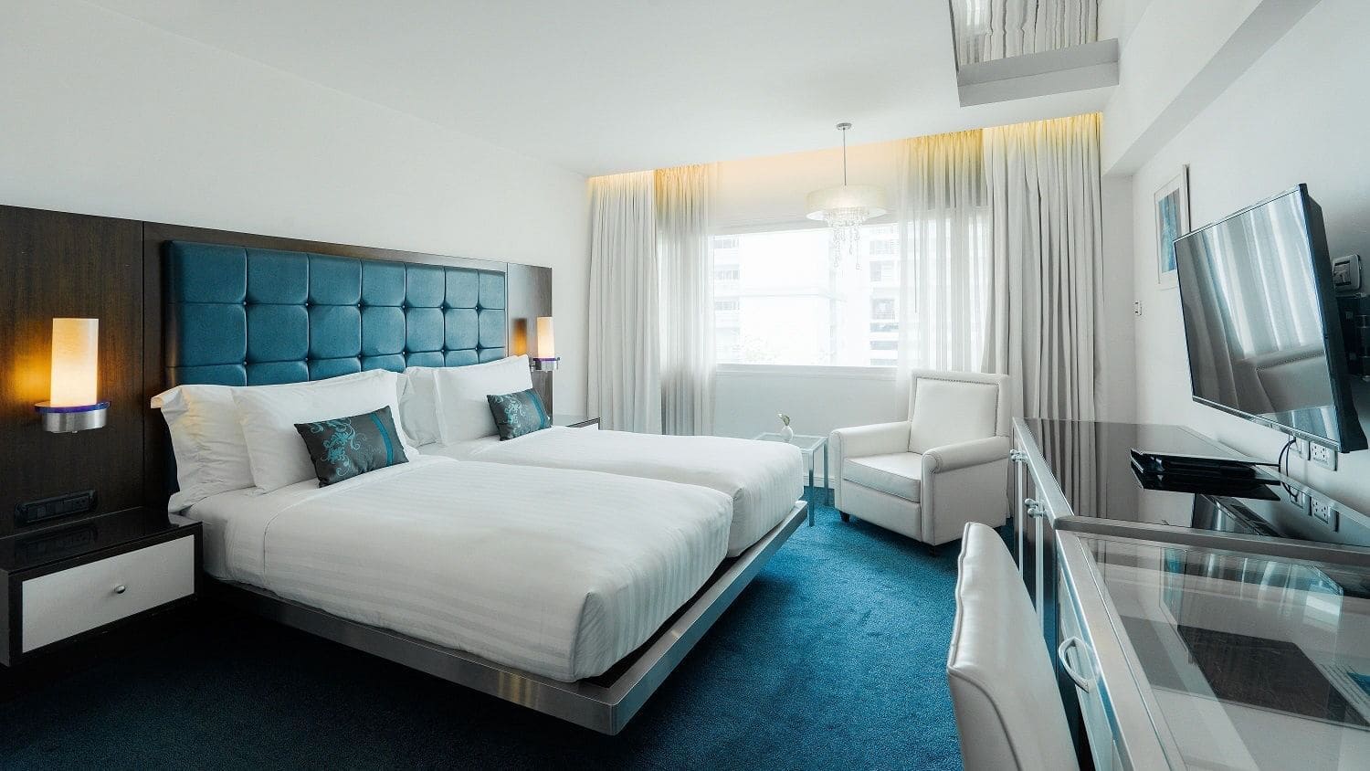Просторные номера отеля Dream Bangkok оформлены в современном стиле. В номерах работает синяя подсветка и предоставляются гипоаллергенные подушки. В числе прочих удобств — мини-бар.