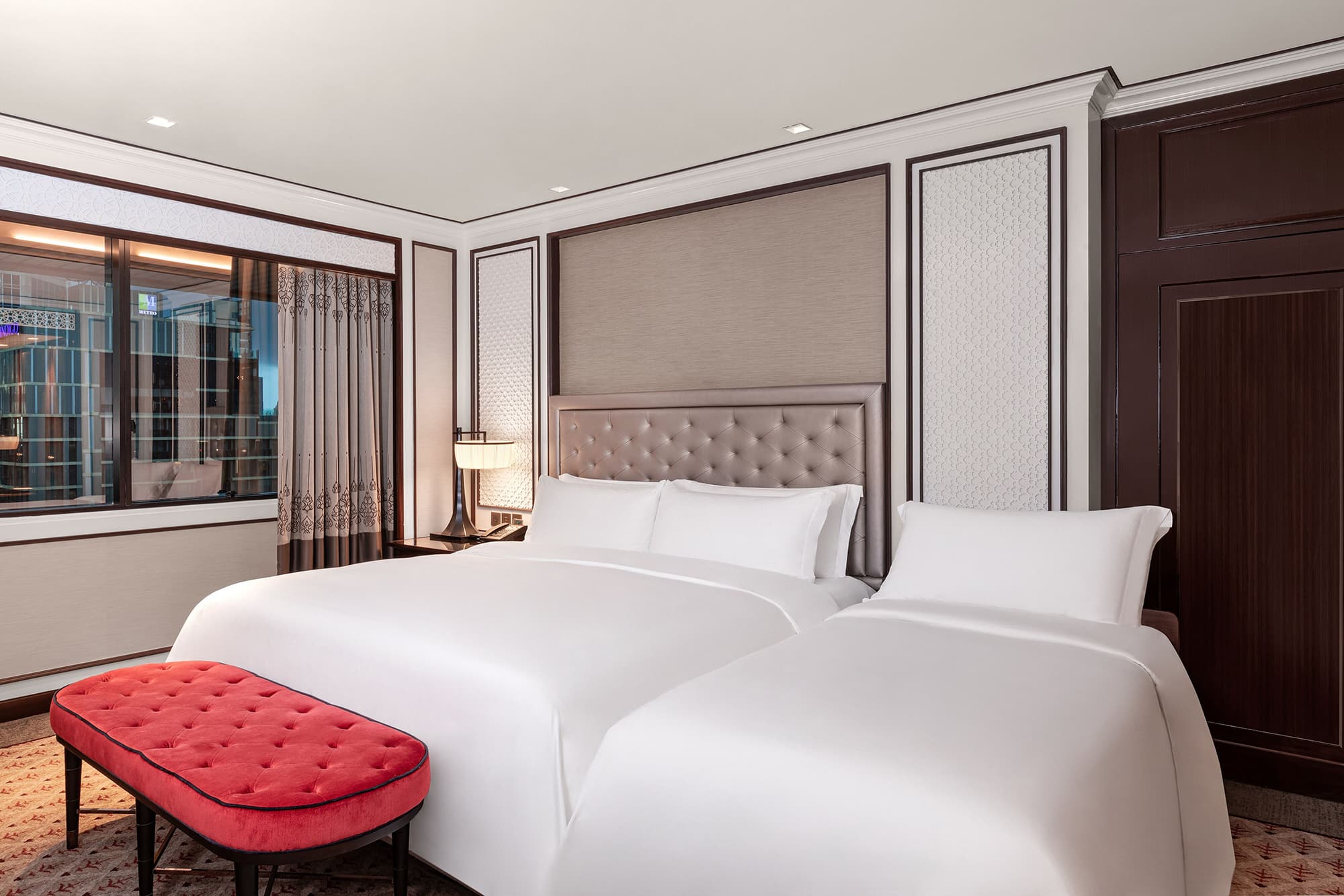 354 номера, рестораны и бары, открытый бассейн, бесплатный Wi-Fi, фитнес-центр, спа-центр, бизнес-центр, конференц-зал, парковка, химчистка и прачечная, консьерж.