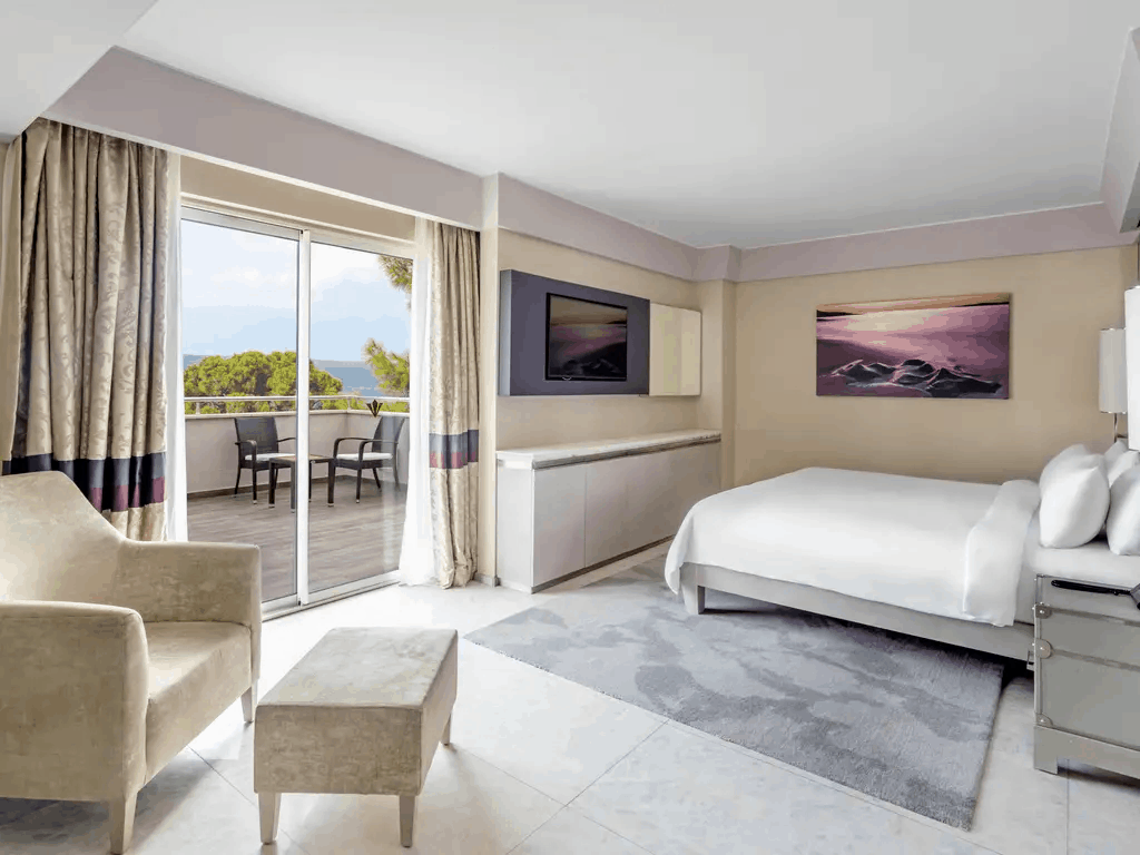 В интерьере номеров отеля Rixos Premium Tekirova использована деревянная мебель и французские окна. В каждом номере установлен кондиционер, мини-бар и телевизор со спутниковыми каналами.