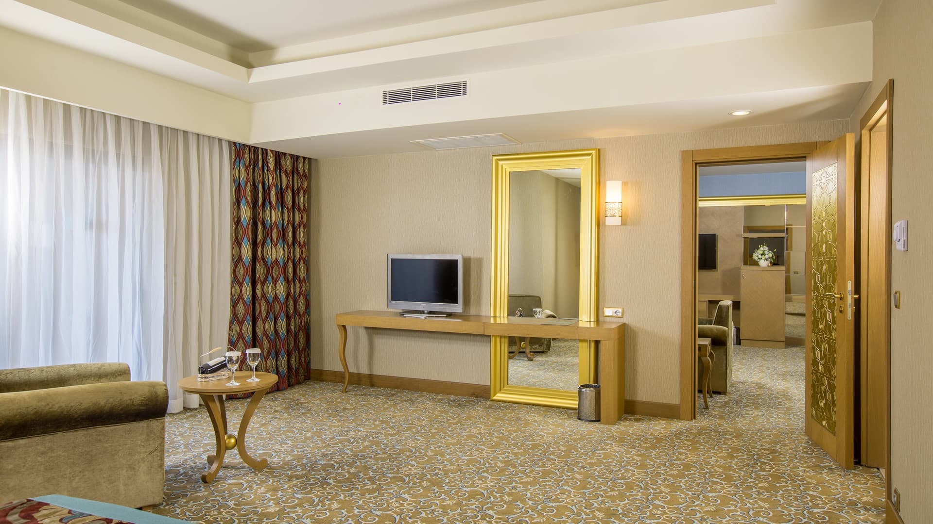 В богатом оформлении номеров курортного отеля Royal Holiday Palace современные удобства сочетаются с традиционными элементами декора. В распоряжении гостей бесплатный Wi-Fi, телевизор с плоским экраном и спутниковыми каналами, мини-бар и принадлежности для чая/кофе.