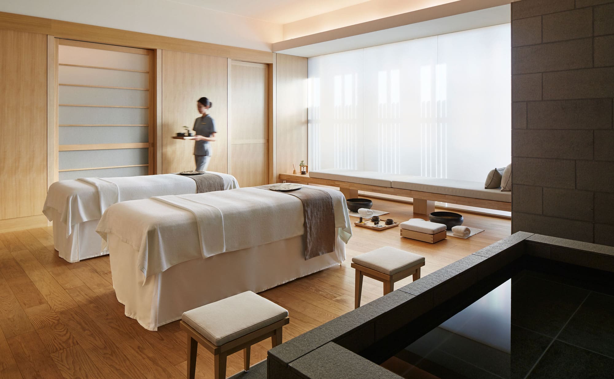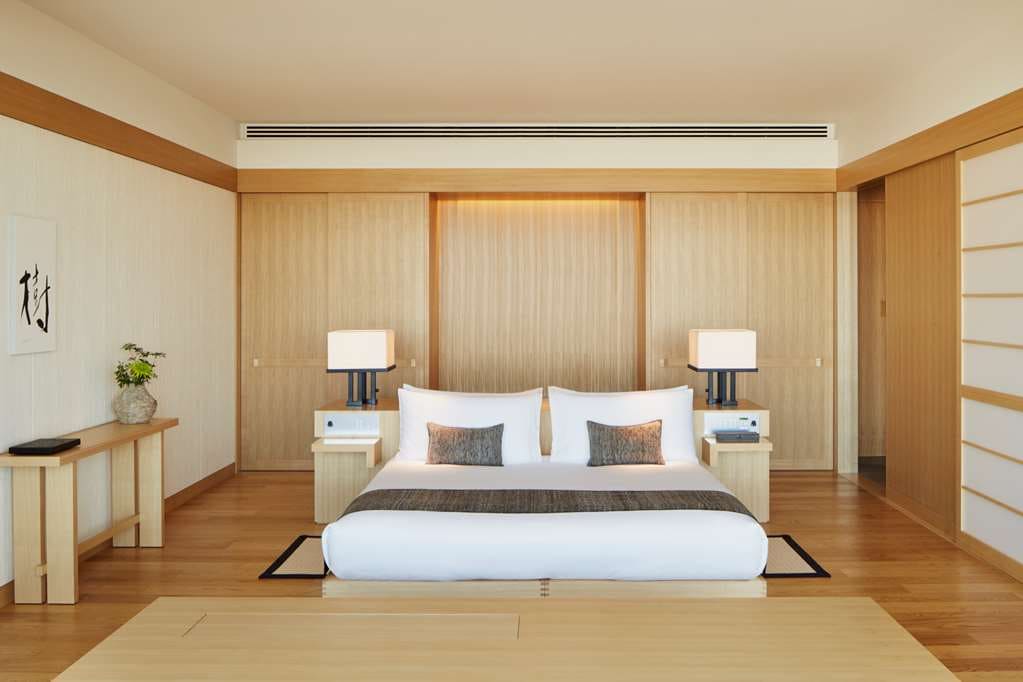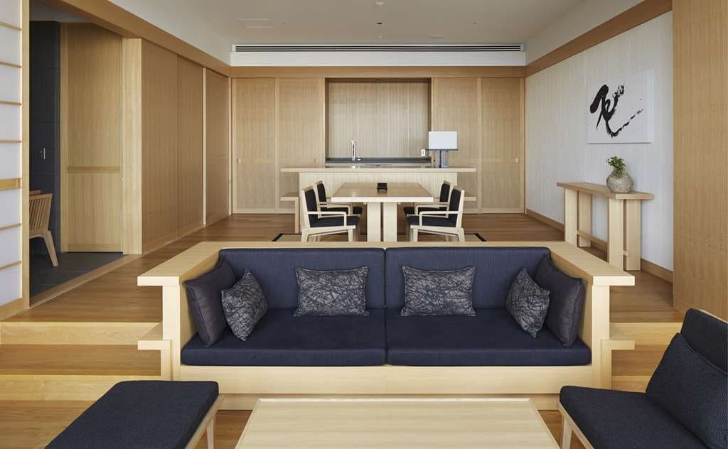 Suite (141-146 кв. м). Гостиная с обеденным столом, гардеробная, спальня с кроватью king-size или двумя отдельными кроватями, ванная комната с баней-ванной офуро.