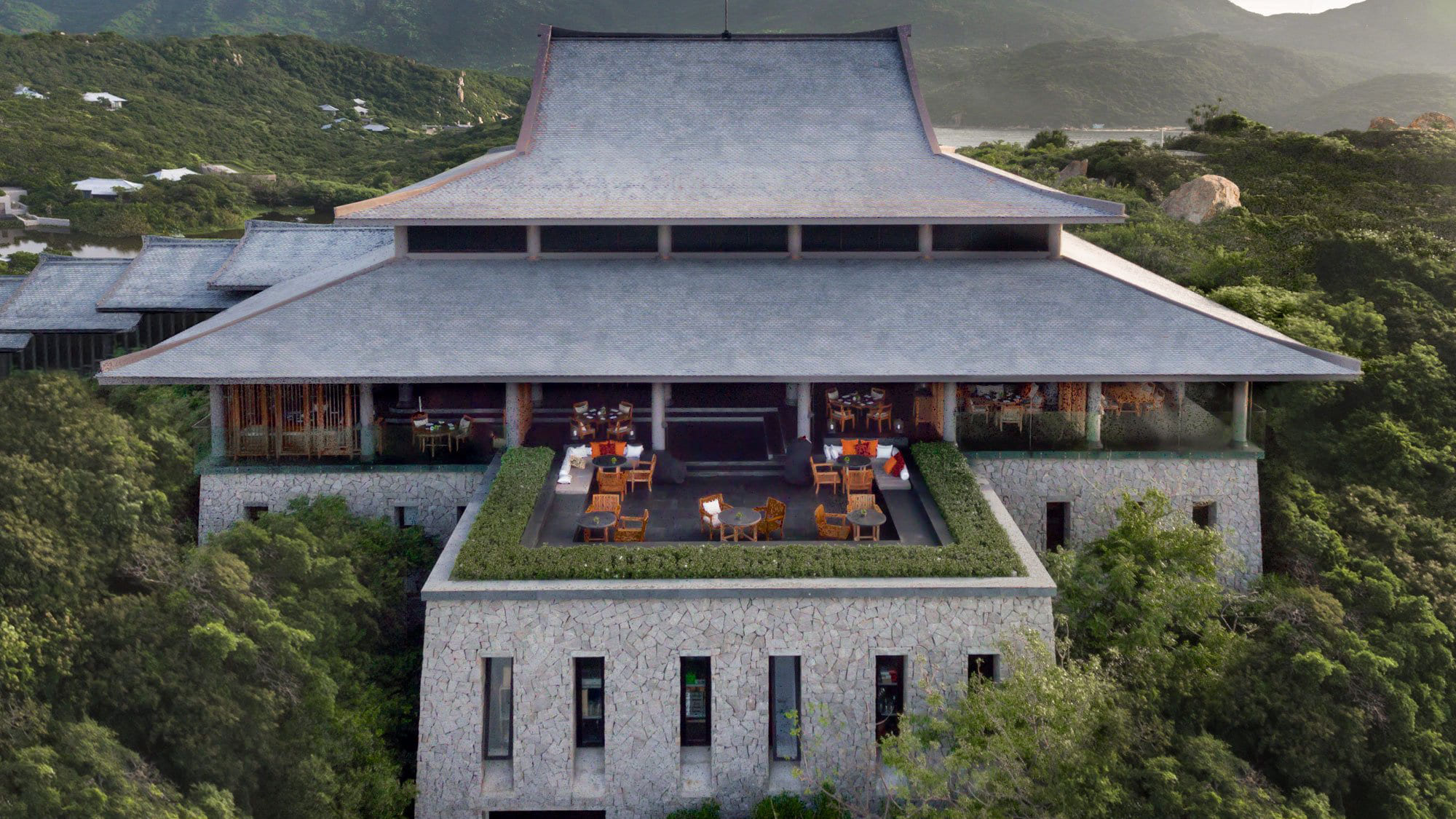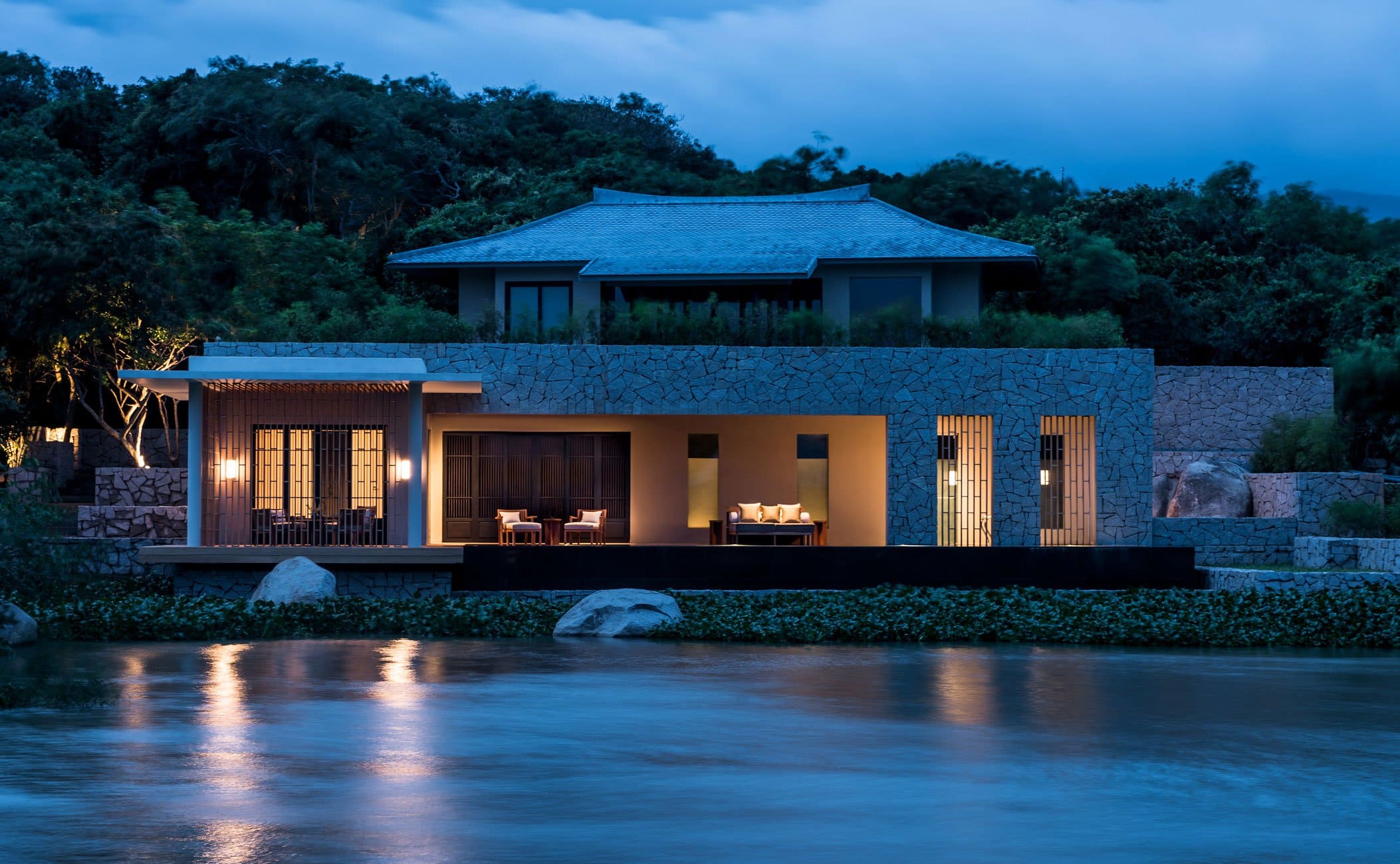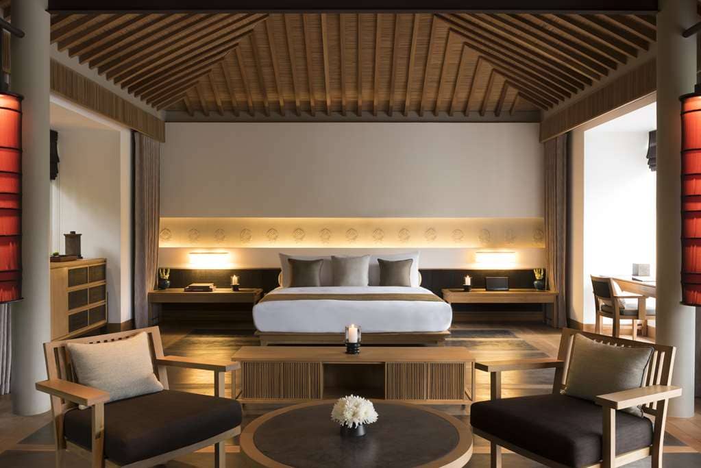 Pavilion. Терраса, спальня с гостиной зоной (кровать king-size), ванная комната с ванной и душевой кабиной. Вид на горы и озеро.