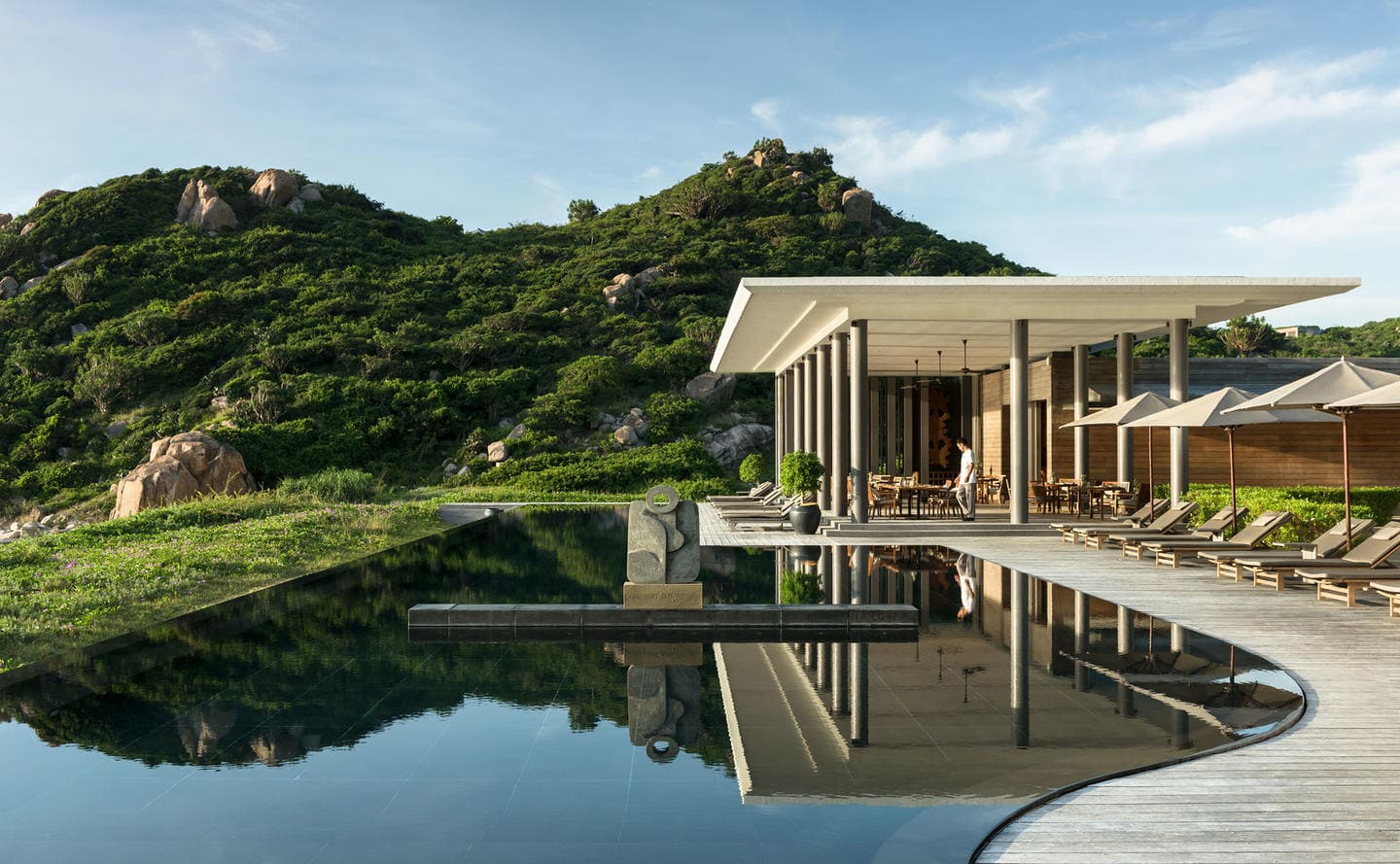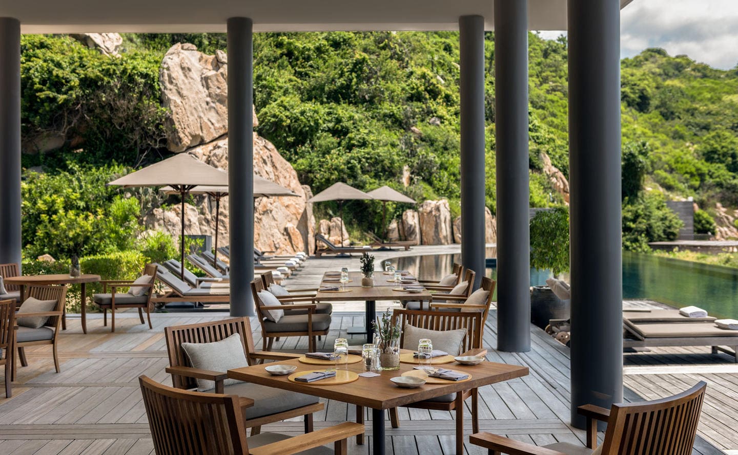 Ocean pool pavilion. Терраса с открытым персональным бассейном, спальня с гостиной зоной (кровать king-size), ванная комната с ванной и душевой кабиной. Вид на море.