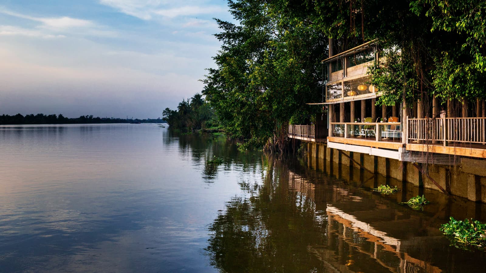 На берегу реки Сайгон, в 15 минутах езды на катере от центра города, в 30 минутах езды на автомобиле от аэропорта Хошимина.