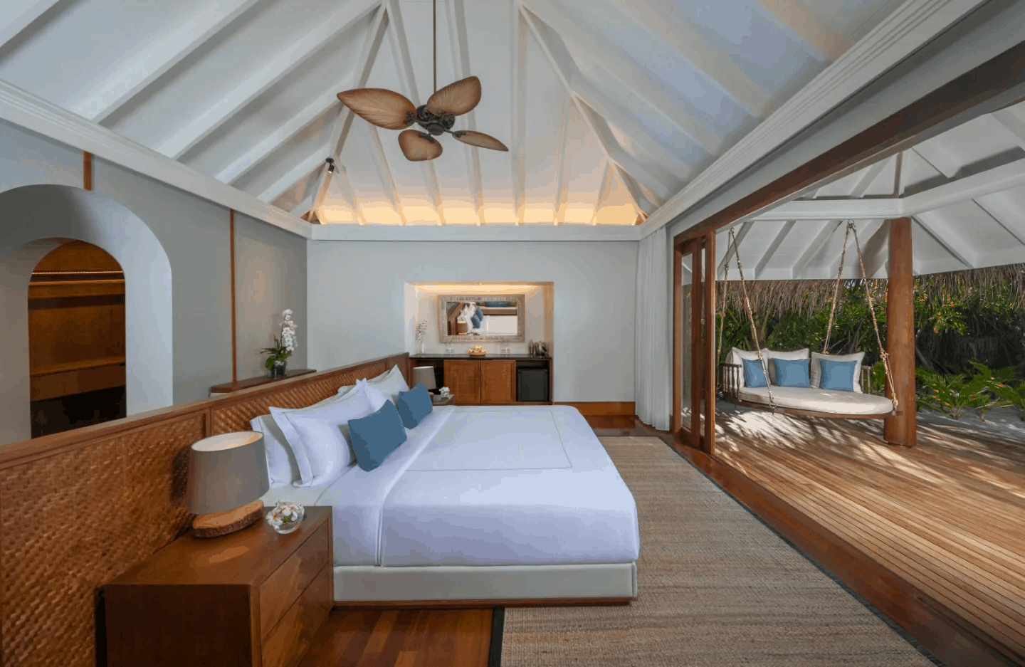 В распоряжении постояльцев хлопчатобумажное постельное белье премиум-класса, кондиционер, большая ванна, обеденный павильон на открытом воздухе и развлекательная система с телевизором с плоским экраном, док-станцией для iPod и DVD-плеером. Кроме того, на виллах установлены холодильник для вина, кофемашина для приготовления эспрессо и полностью укомплектованный мини-бар. Гостям каждой уединенной виллы с выходом к пляжу и океану предоставляются iPad, обеспечивающий доступ к персонализированным услугам консьержа, а также круглосуточные услуги закрепленного за виллой менеджера.