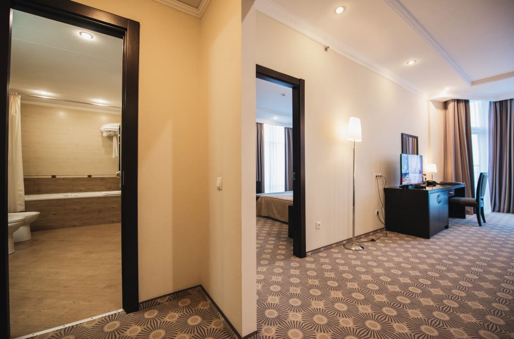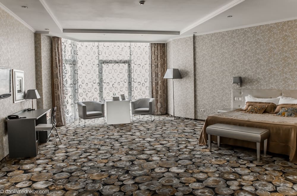 Люкс с видом на город (Premier suite city view) (71 кв. м). Гостиная, спальня с кроватью king-size, ванная комната. Вид на город.