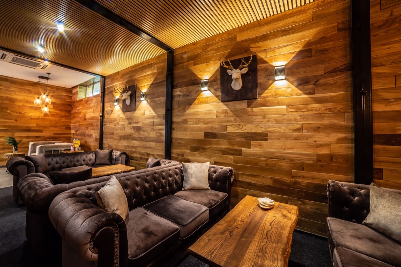 Шале: Двухэтажное шале идеально вписано в окружающий ландшафт. Из окон открывается вид на долину реки Архыз и северный склон Кавказского хребта. Шале обустроены четырьями спальнями с большими двуспальными кроватями King-size или Twin-size, гостиной и кухонной зоной. Гостиная комната разделена на функциональные зоны: кухня со встроенной техникой, трансформируемая обеденная зона, где с комфортом может расположится до 12 человек, а также зона-отдыха с 2 диванами-кроватью и журнальным столиком. Комнаты оформлены в стиле современного горного шале из натуральных материалов, с природными элементами декора. Дизайнерские отделка и предметы интерьера выполнена исключительно из ценных пород дерева. Шале оборудованы телевизорами с плоским экраном, доступен бесплатный WI-FI. Для удобства гостей есть три санузла с душевыми кабинами. Гостям предлагаются индивидуальные туалетные принадлежности, постельное белье из натуральных тканей, набор полотенец, набор посуды и инвентарь для кухни.