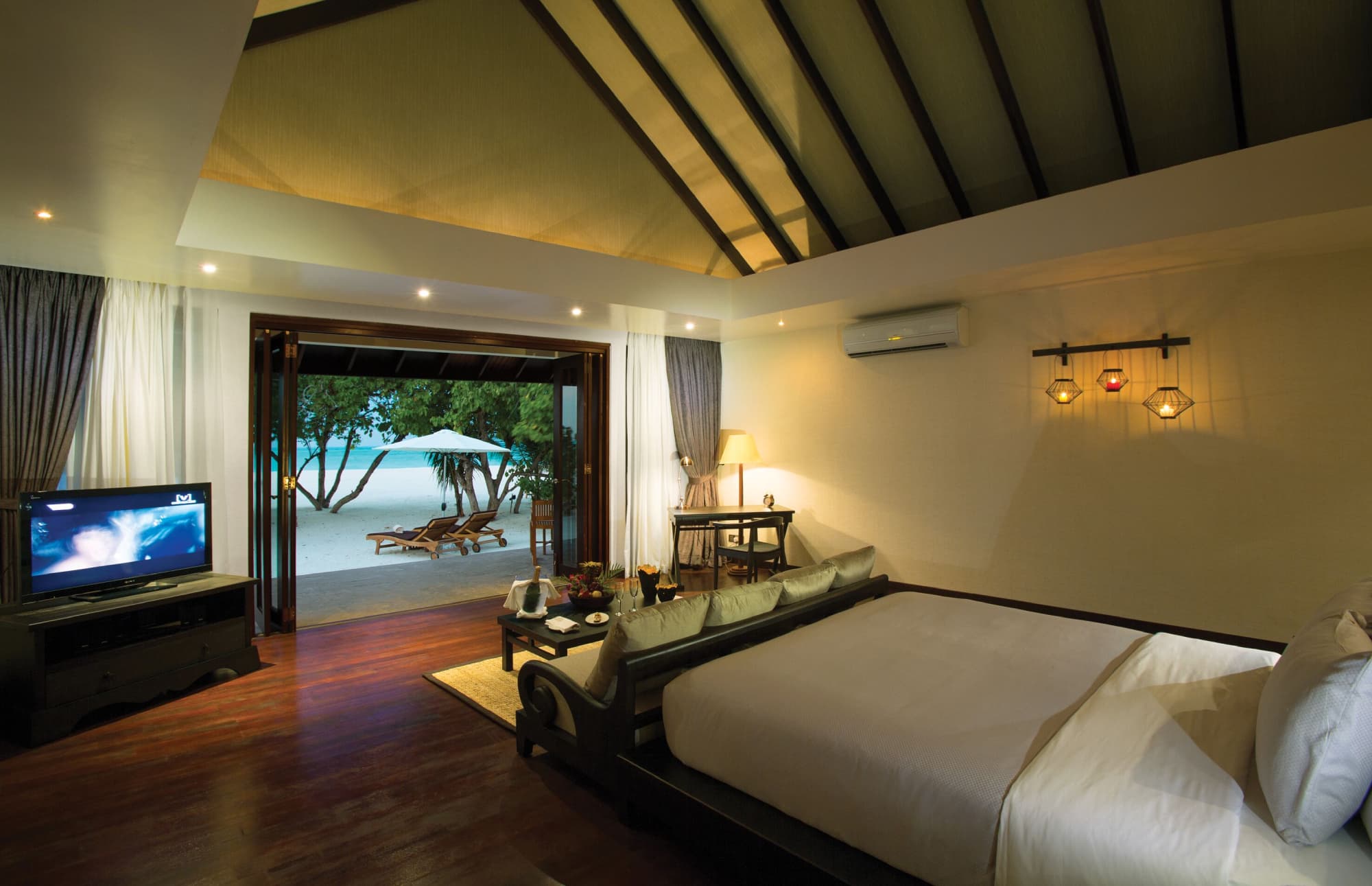 К услугам гостей роскошные виллы, расположенные рядом с белоснежными пляжами и бирюзовой лагуной. Просторные виллы с прямым выходом на пляж обставлены стильной мебелью. В распоряжении гостей ванная комната на открытом воздухе и собственный садовый участок с шезлонгами. Виллы декорированы в мальдивском стиле. В числе удобств док-станция для iPod, электрический чайник, кофемашина и DVD-плеер. Также гостям предоставляются тапочки и набор для чистки зубов.
