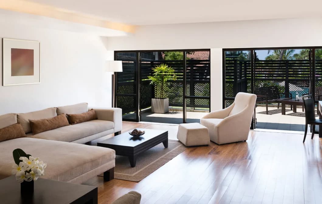 1 AVANI Suite (110 кв. м). Двухкомнатный номер: отдельные спальня и гостиная, ванная комната с джакузи и ванной.