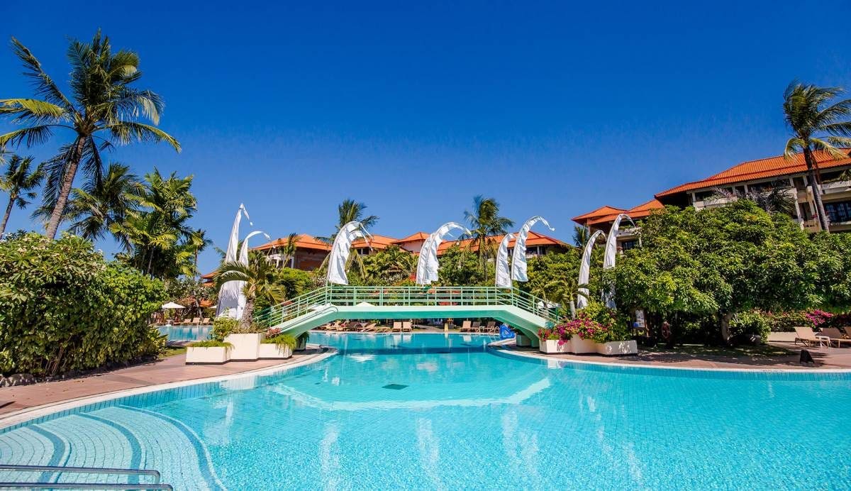 Курортный отель Ayodya Bali расположен на пляже Нуса-Дуа с белым песком. К услугам гостей комфортабельные номера с великолепным видом, частный пляж протяженностью 300 метров и большой открытый бассейн. На территории также разбит сад и обустроена детская игровая площадка. Из номеров отеля Ayodya, окруженных пышным тропическим садом, открывается вид на лагуну, плавательный бассейн или Индийский океан. В каждом из них есть собственный балкон и ванная комната, отделанная мрамором. В числе других удобств — телевизор с плоским экраном и спутниковыми каналами. Гости могут позаниматься в фитнес-центре и заказать сеанс расслабляющего массажа в спа-центре Ayodya. На территории также имеются площадка для пляжного волейбола, детская игровая площадка и комната для игр. В ресторанах курортного отеля Ayodya Bali подают блюда средиземноморской, итальянской и японской кухни. В лаундже с террасой Rama предлагают коктейли, а в ресторане у бассейна Surfer’s Corner можно заказать закуски. Сотрудники стойки регистрации говорят на английском, индонезийском и японском языках.