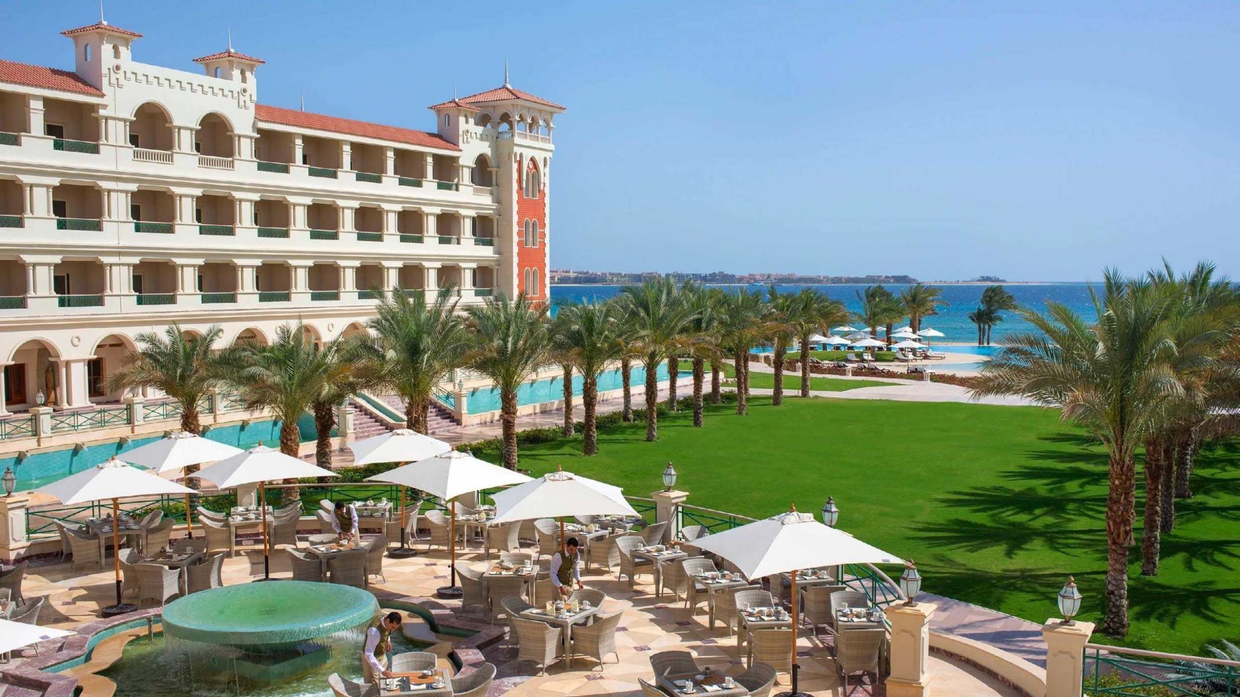 В отеле работают 7 превосходных всемирно известных ресторанов с обслуживанием по меню, в которых гостям предложат блюда египетской, итальянской, мексиканской и азиатской кухонь, а также блюда, приготовленные на гриле, тэппанъяки и морепродукты. Кроме того, гости смогут посетить суши-бар.
