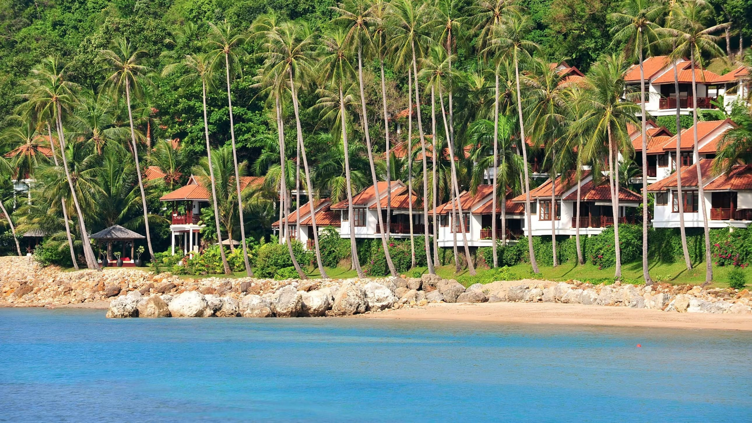 Роскошный пятизвездочный отель Belmond Napasai собственной набережной, прекрасным пейзажным бассейном с видом на море и спа-услугами расположен на острове Самуи. Из отеля открывается вид на пляж Бан Тай. В отеле работает 4 ресторана. Просторные виллы оборудованы кондиционерами и оформлены в современном тайском стиле. Из большого патио открывается вид на море. В распоряжении гостей каждой виллы бесплатный Wi-Fi, DVD-плеер, телевизор и диван в тайском стиле. Собственные ванные комнаты с ванной и тропическим душем отделаны плиткой терраццо. Отель Napasai Belmond расположен на пляже Мае Нам, примерно в 25 минутах езды от аэропорта Самуи. В числе удобств бесплатная парковка. Можно взять уроки дайвинга и сноркелинга у сертифицированных PADI инструкторов. Также проводятся прогулки на слонах. В 5 минутах езды от отеля расположено 18-луночное поле для гольфа. Из ресторана Lai Thai открывается вид на океан с обзором 180°. В ресторане обустроена открытая терраса. В нем в течение всего дня можно заказать блюда тайской кухни. Барбекю из свежих морепродуктов и блюда интернациональной кухни сервируют в менее формальном ресторане Beach. Напитки можно заказать в одном из 2 баров отеля.