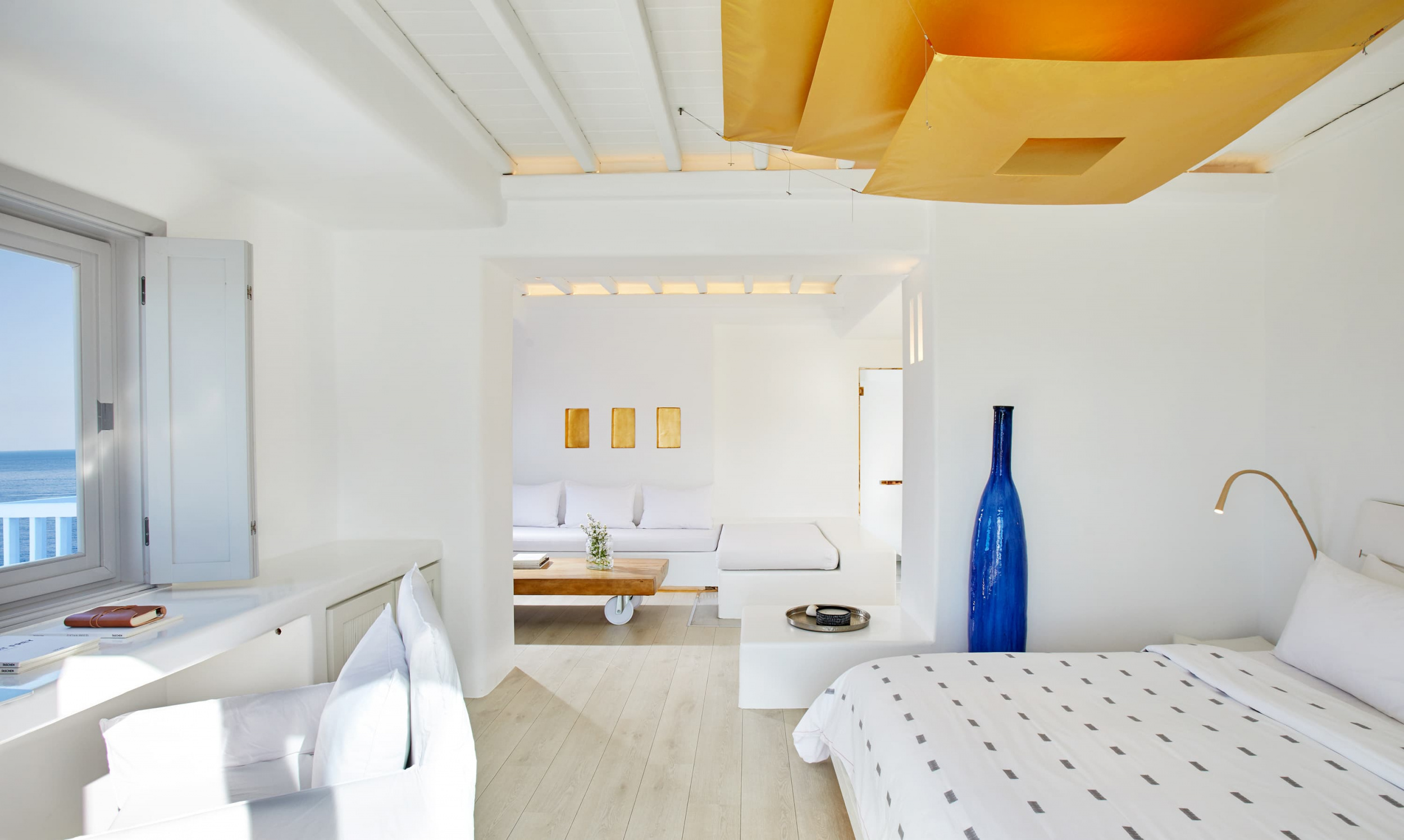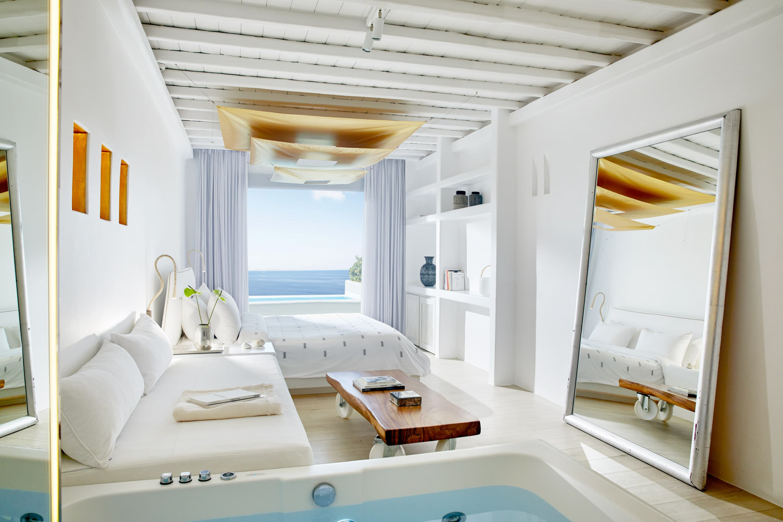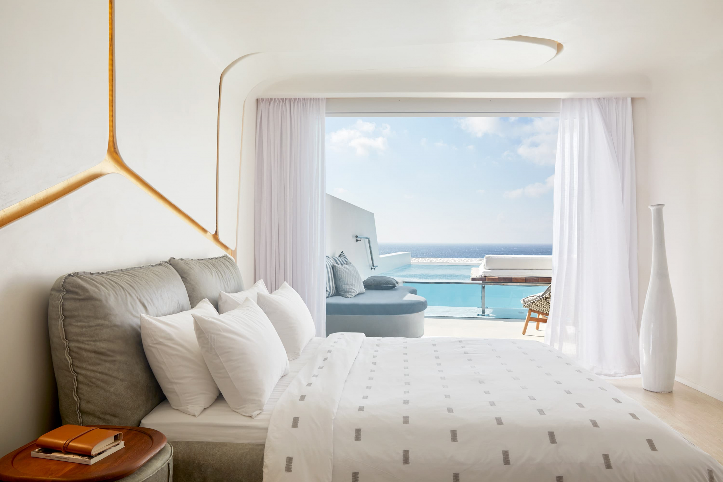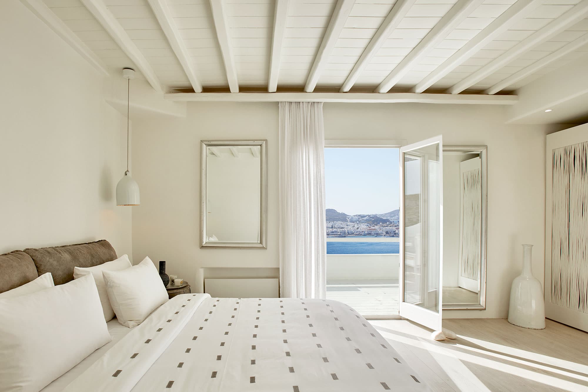 Отель Cavo Tagoo стоит совсем неподалеку от гавани и города Миконос. Отель построен в традиционном местном стиле. Стены сложены из местного камня и побелены, что создает приятный контраст с яркой зеленью и синевой моря. Потолки балочные, мебель выполнена в традиционном греческом стиле.