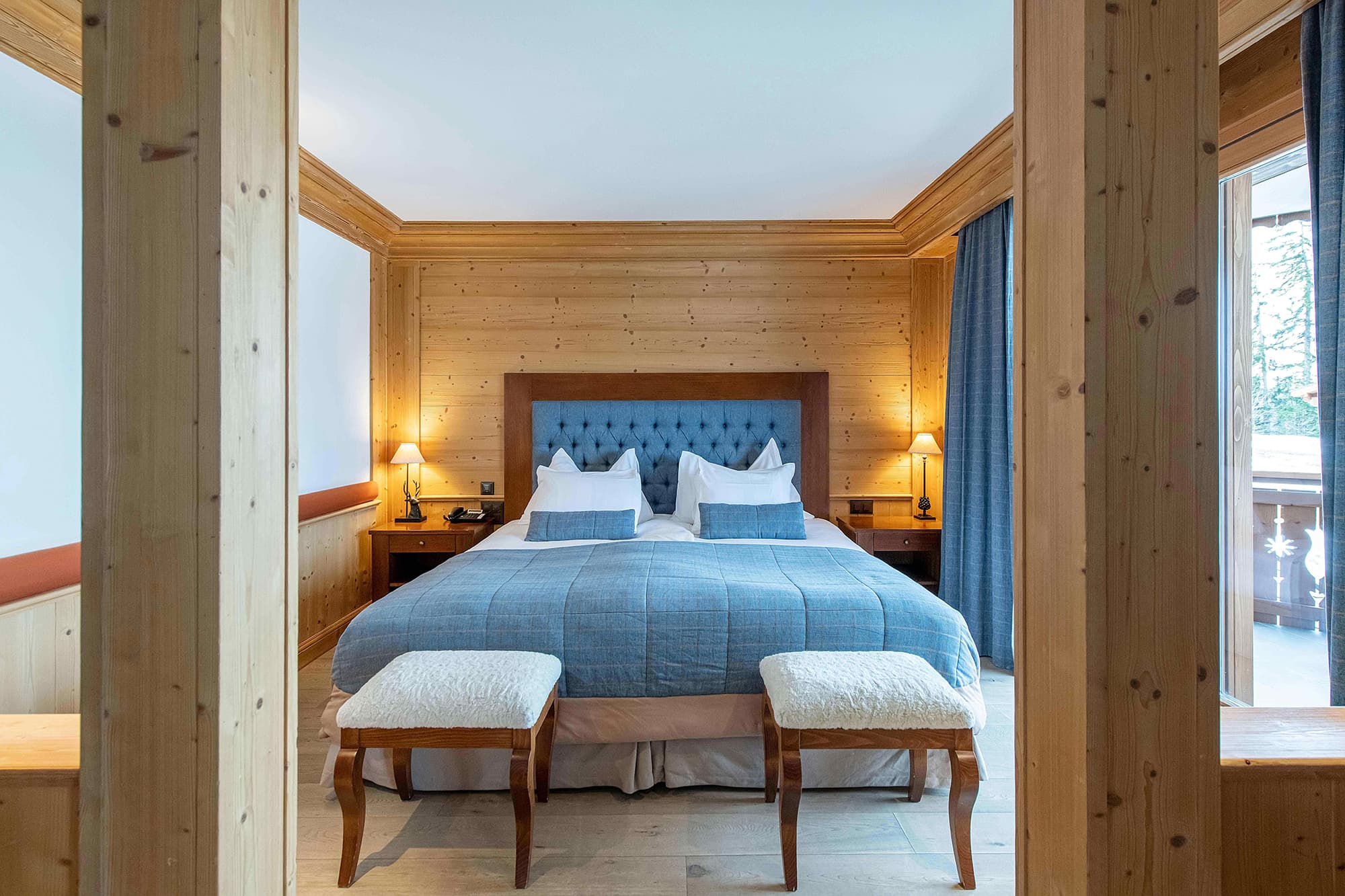 RoyAlp junior suite (55 кв. м). Спальня с гостиной зоной, ванная комната с ванной и отдельной душевой кабиной. Большая терраса с видом на горы. Кофемашина Nespresso. Размещение 2 взр + 2 детей(до 16 лет).