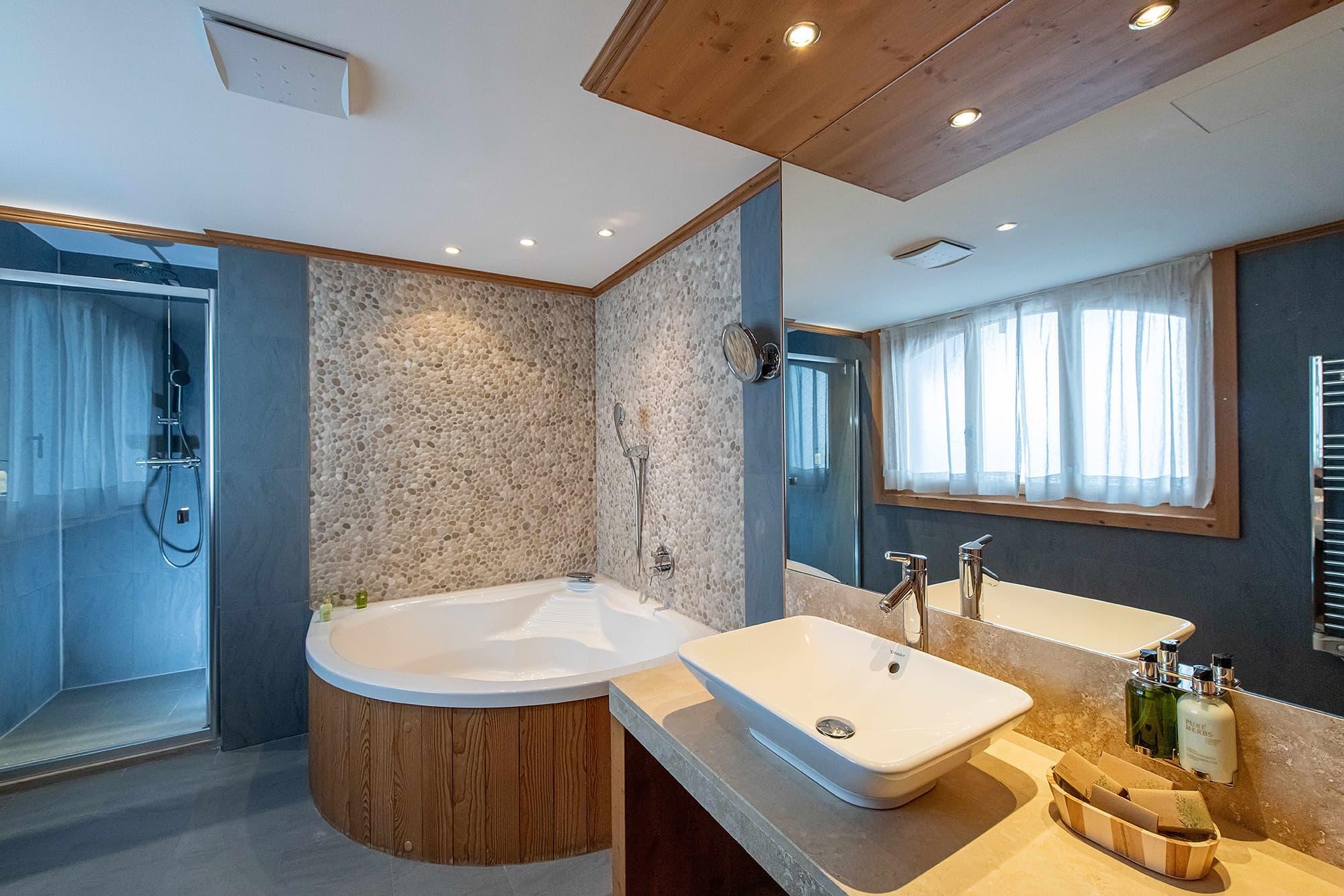RoyAlp Executive room (40 кв. м). Спальня, ванная комната с ванной и отдельной душевой кабиной. Большая терраса с видом на горы.