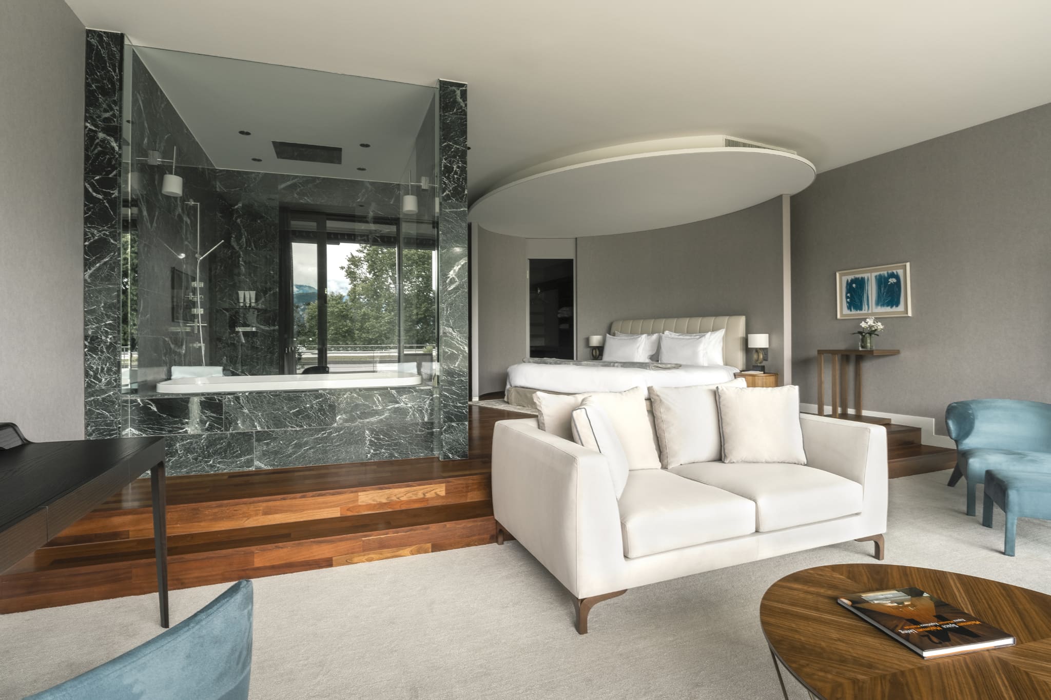 Интерьеры Chenot Palace Weggis были детально проработаны, чтобы гости могли поучить максимум удовольствия от моментов расслабления и восстановления. Отдельного внимания заслуживают номера отеля, в которых создана идеальная атмосфера для спокойного глубокого сна: теплые тона, особая акустика, освещение и постельное бельё – всё, для того чтобы объятия Морфея были самыми сладостными.