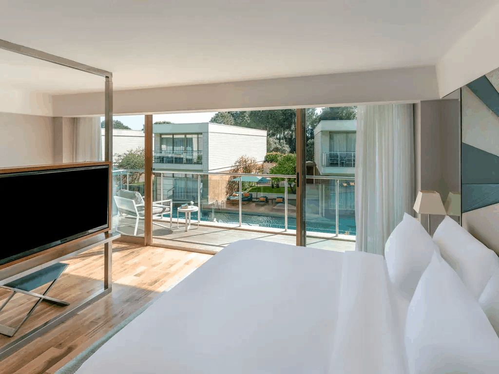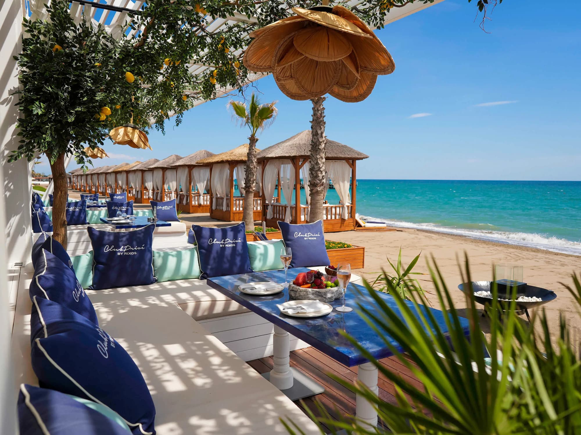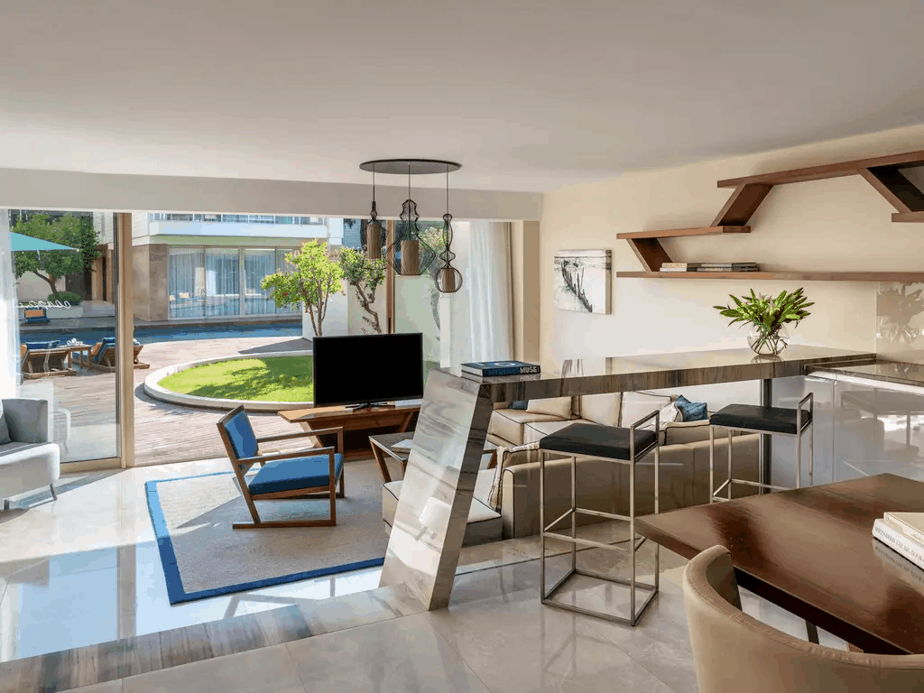 9 двухуровневых Villa Prive (с отдельным бассейном внутри частного сада виллы, гостиная с обеденной зоной и кухней, 4 спальни с дверью, 4 ванные комнаты, отдельный павильон на пляже, 5 ТВ, макс. 8+2 чел., 264 м2).