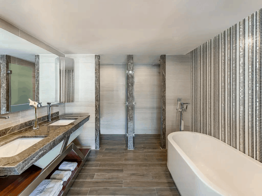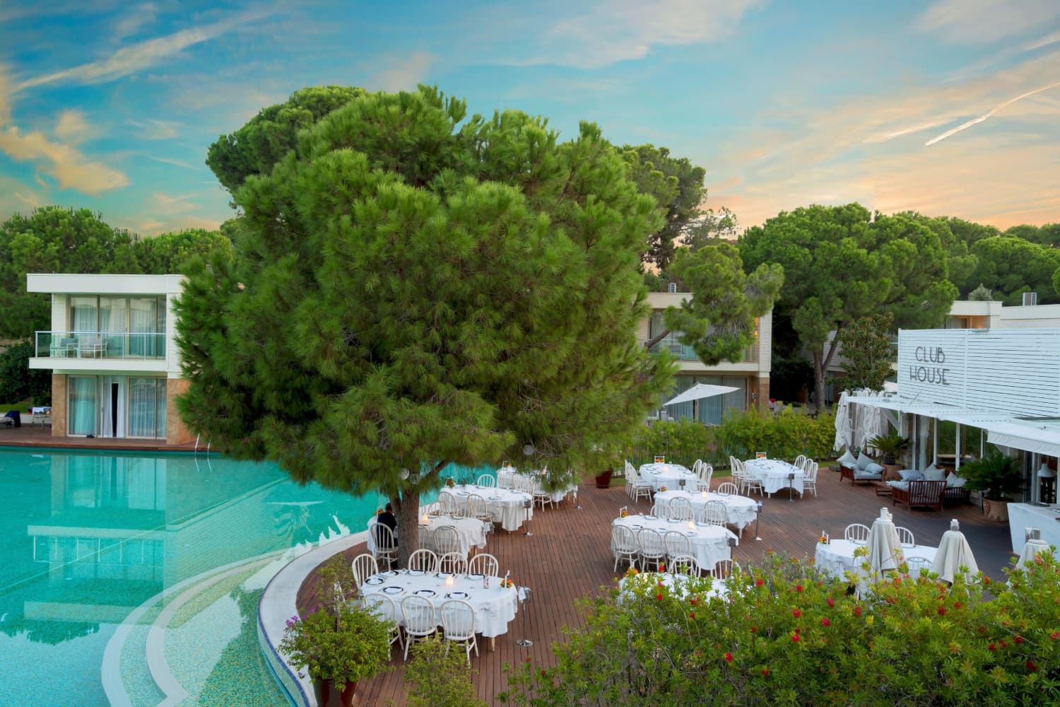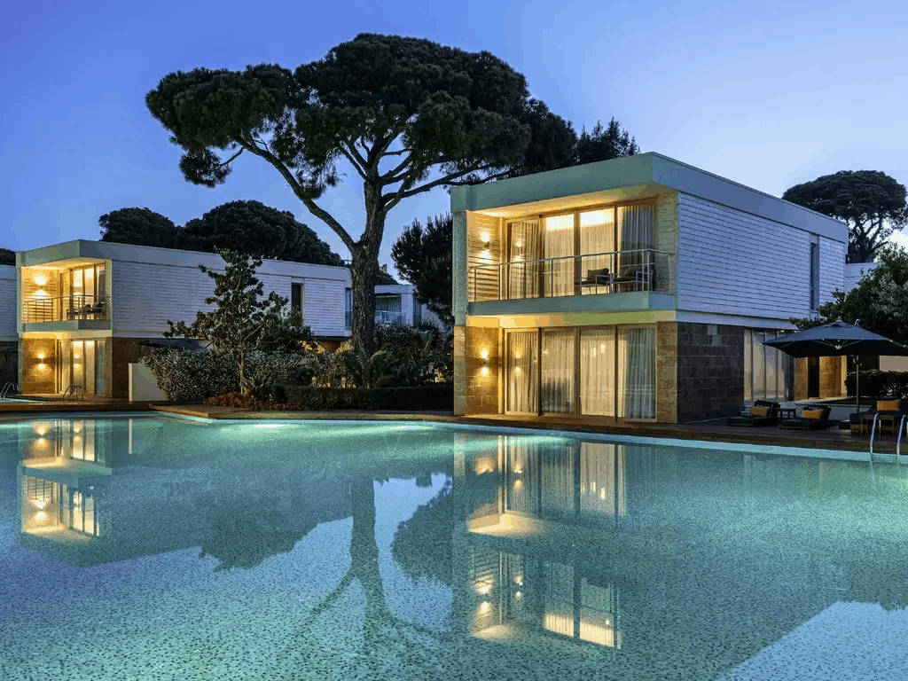 28 двухуровневых Club Villa с отдельным общим бассейном (на первом уровне: гостиная с обеденной зоной и кухней, спальня для няни c дверью, ванная с душем, терраса; на втором уровне: 2 спальни с дверью, 2 ванные комнаты: одна из них с ванной; терраса, отдельный павильон на пляже, 4 ТВ, макс. 5+2 чел., 164 м2).