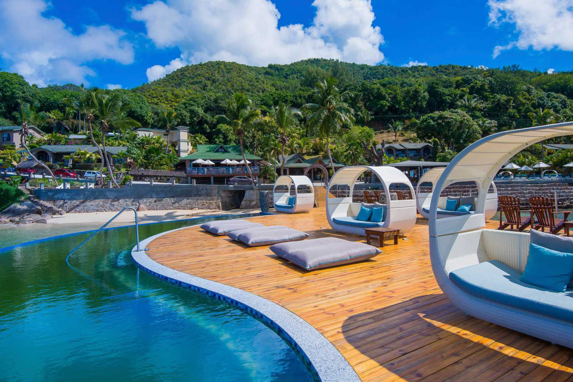 Отель расположен на юго-западном побережье о. Праслен, в 15 минутах полета и 45 минутах езды на лодке от международного аэропорта Маэ.