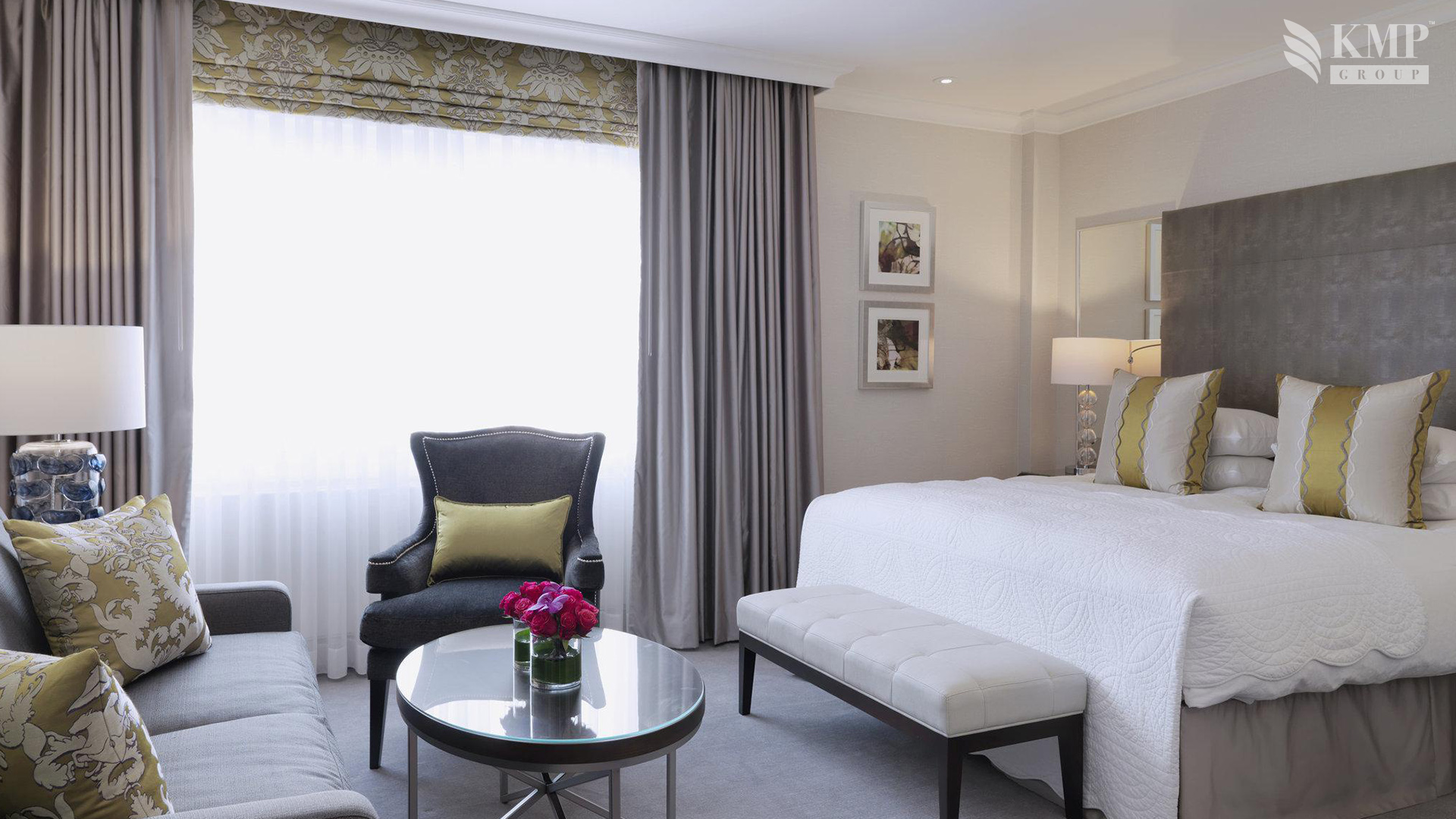 Junior suites (40 кв.м). Гостиная зона, спальня с кроватью king-size, гардеробная, ванная комната с ванной и душевой.