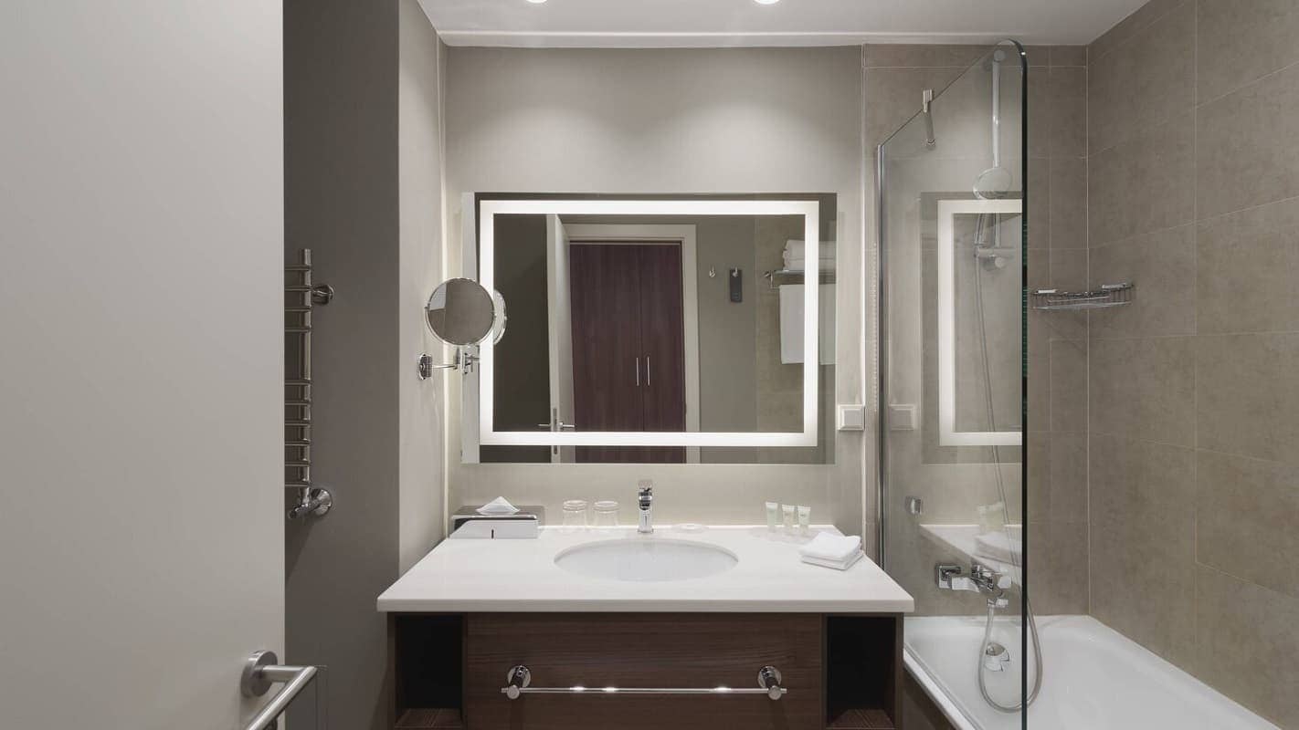Junior suite (63 кв. м): гостиная зона, 2 спальни (одна - с кроватью king-size, вторая - с двумя отдельными кроватями), 2 ванных комнаты. Вид на город.