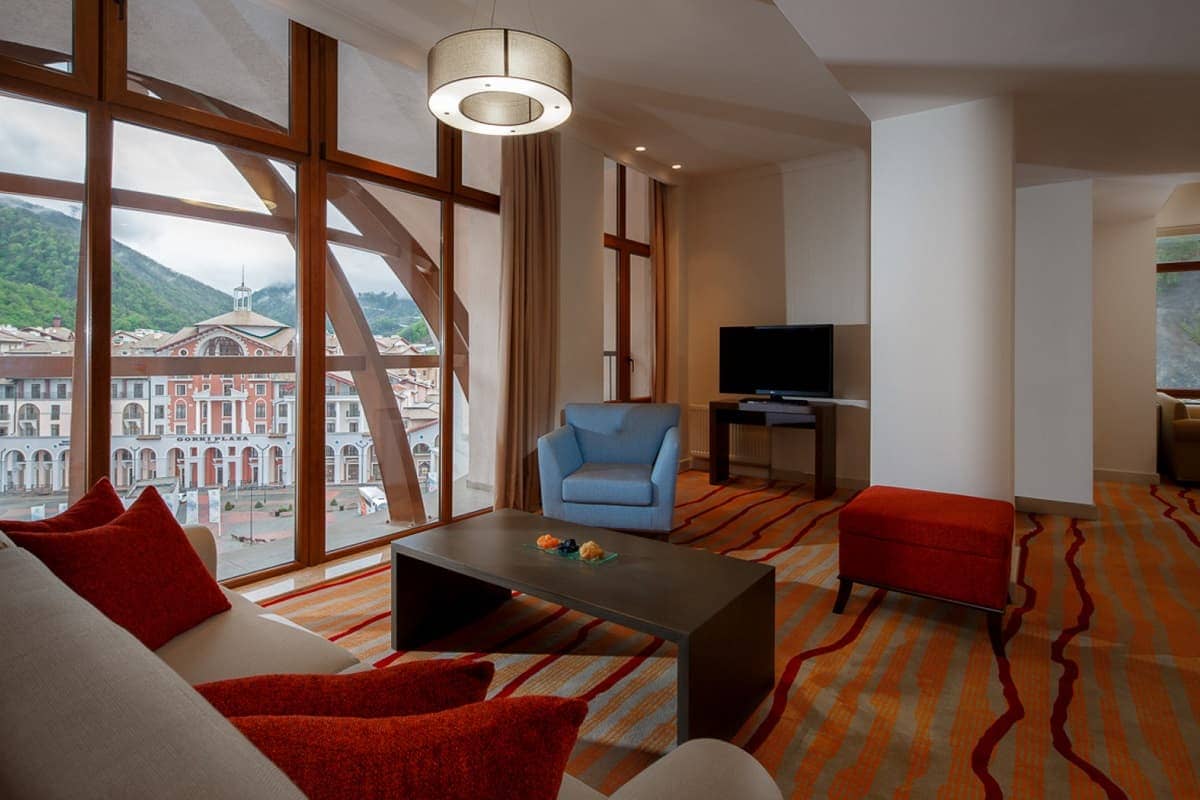 Прогулка до лыжного склона занимает несколько минут. До международного аэропорта Сочи и побережья Черного моря можно добраться на автомобиле за 40 минут. В шаговой доступности от отеля расположено казино.